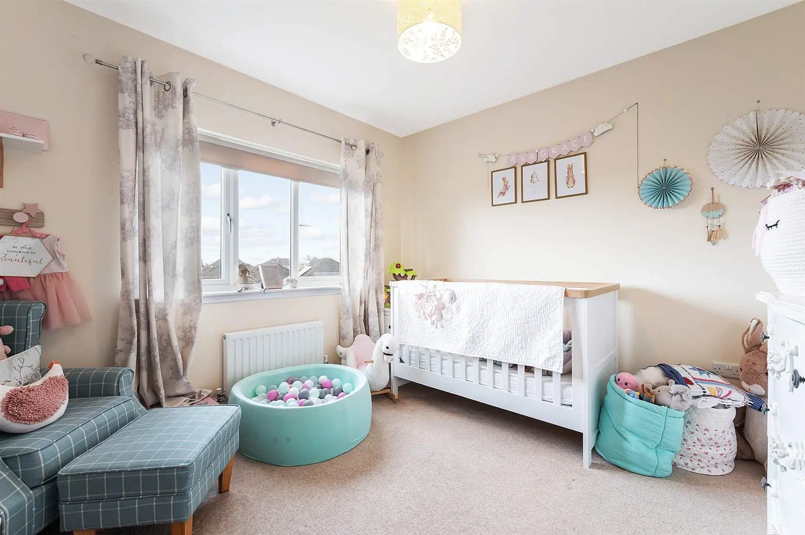 All floor coverings, blinds, bathroom and light fittings together with integrated appliances.