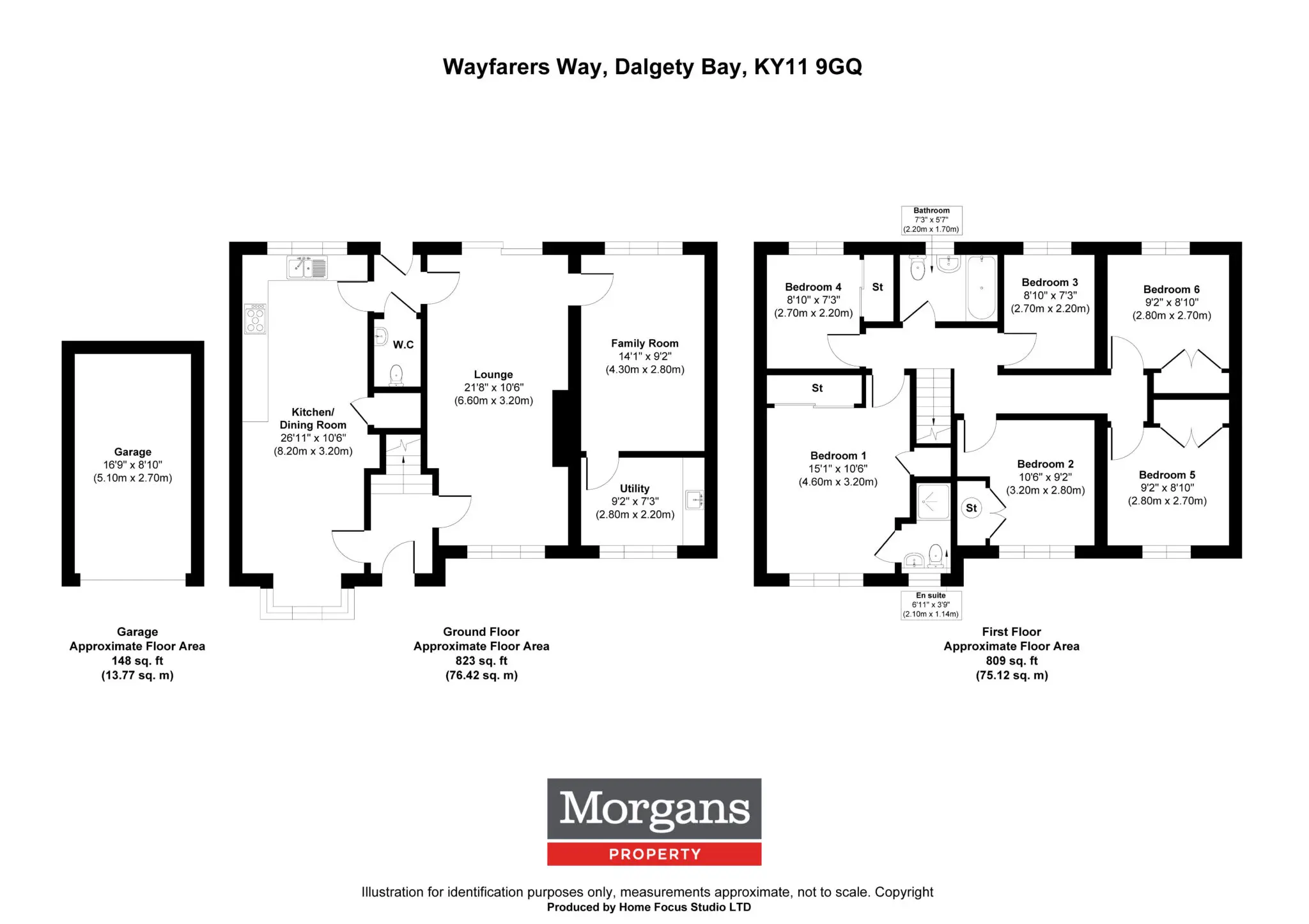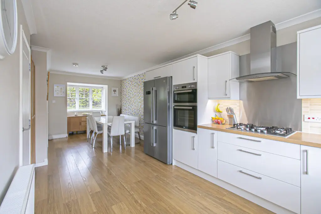 This substantial and beautifully presented extended family home offers extensive and versatile accommodation over two levels, ideal for modern family living and situated on an enviable corner plot. The property provides nice views over woodland areas from the front and rear. The ground floor comprises a welcoming entrance hall leading to a spacious lounge, along with an impressive open-plan kitchen and dining room providing an excellent space for entertaining and everyday living. A separate family room offers additional flexibility, while a utility room and convenient WC complete the ground floor. Upstairs, the property features six bedrooms, including a generous principal bedroom with en-suite facilities. A family bathroom serves the remaining bedrooms, with excellent storage available throughout. Externally, the property is further enhanced by a detached garage, providing secure parking for several vehicles to the front and rear. The gardens are well maintained providing a child and pet safe environment with feature decking and seating areas, an excellent home for entertaining. Situated within the highly sought-after area of Dalgety Bay, the property enjoys a prime location close to local amenities, reputable schooling, and excellent transport links, including rail connections and easy access to the M90.