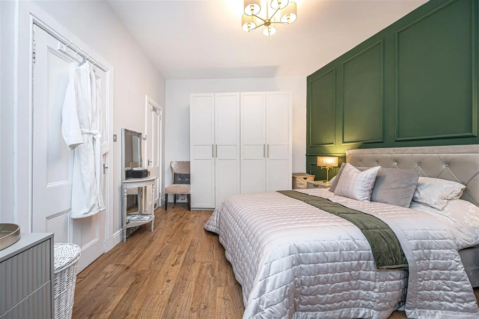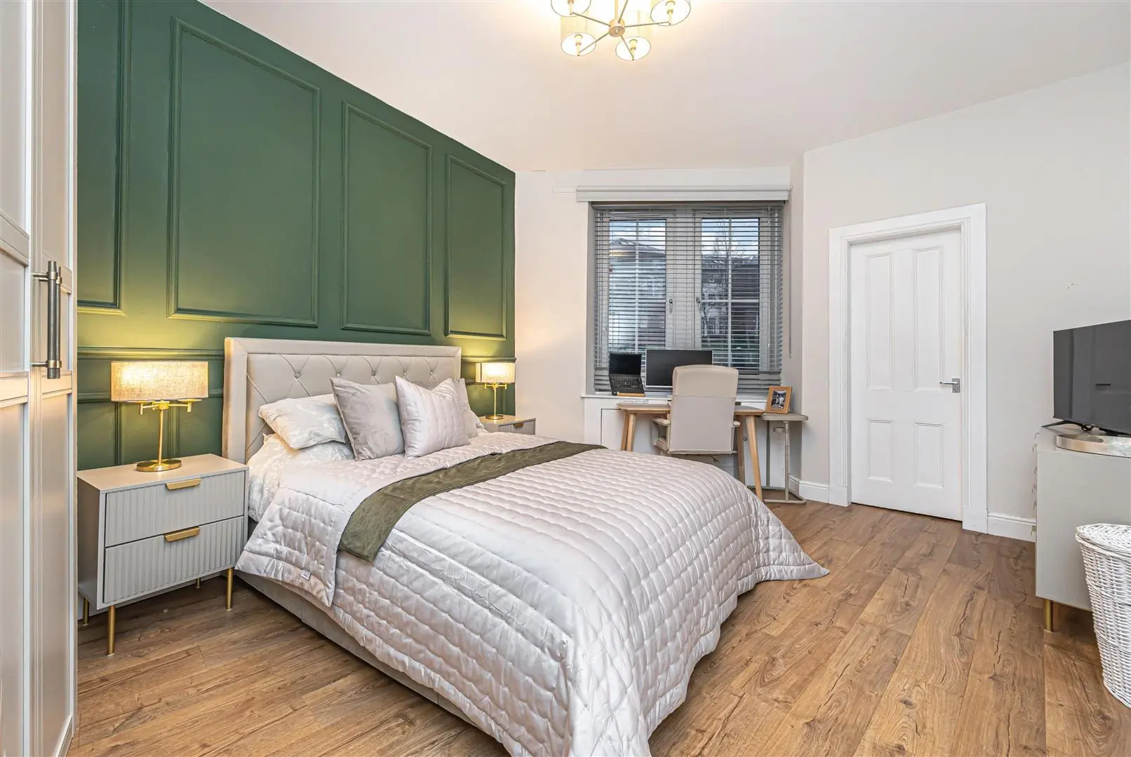 All floor coverings, blinds, bathroom and light fittings together with integrated appliances and white goods.