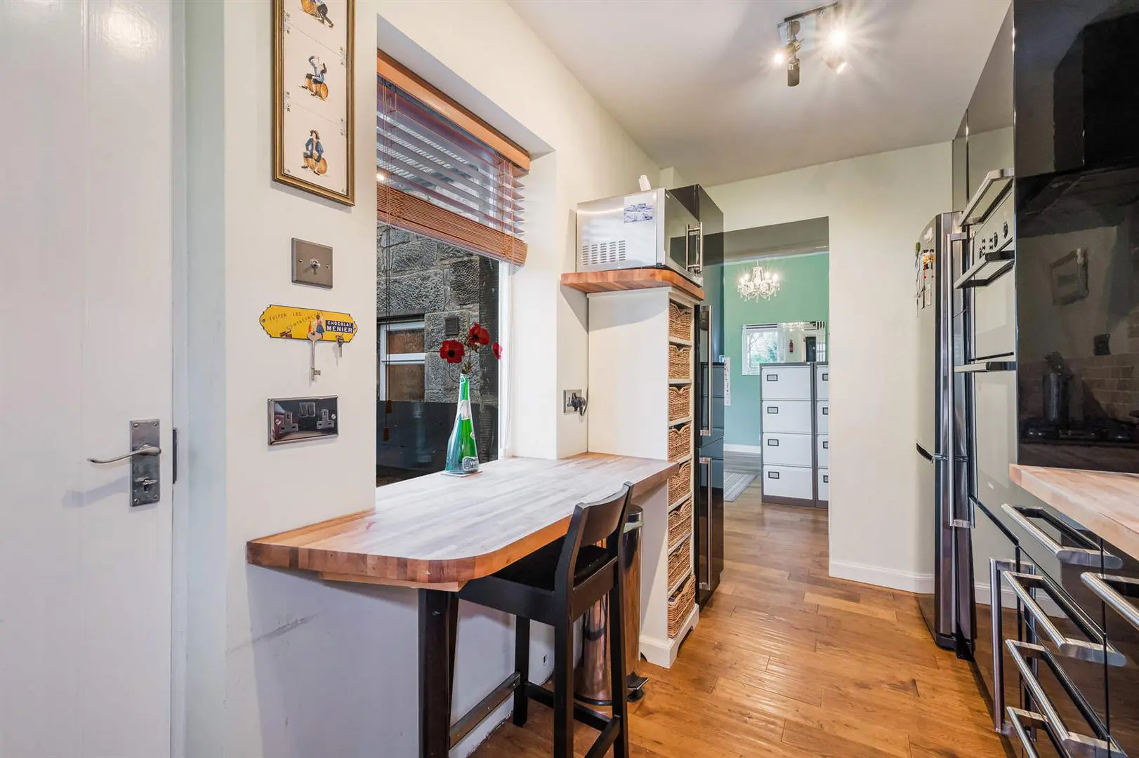 All floor coverings, blinds, bathroom and light fittings together with integrated appliances and wood store.