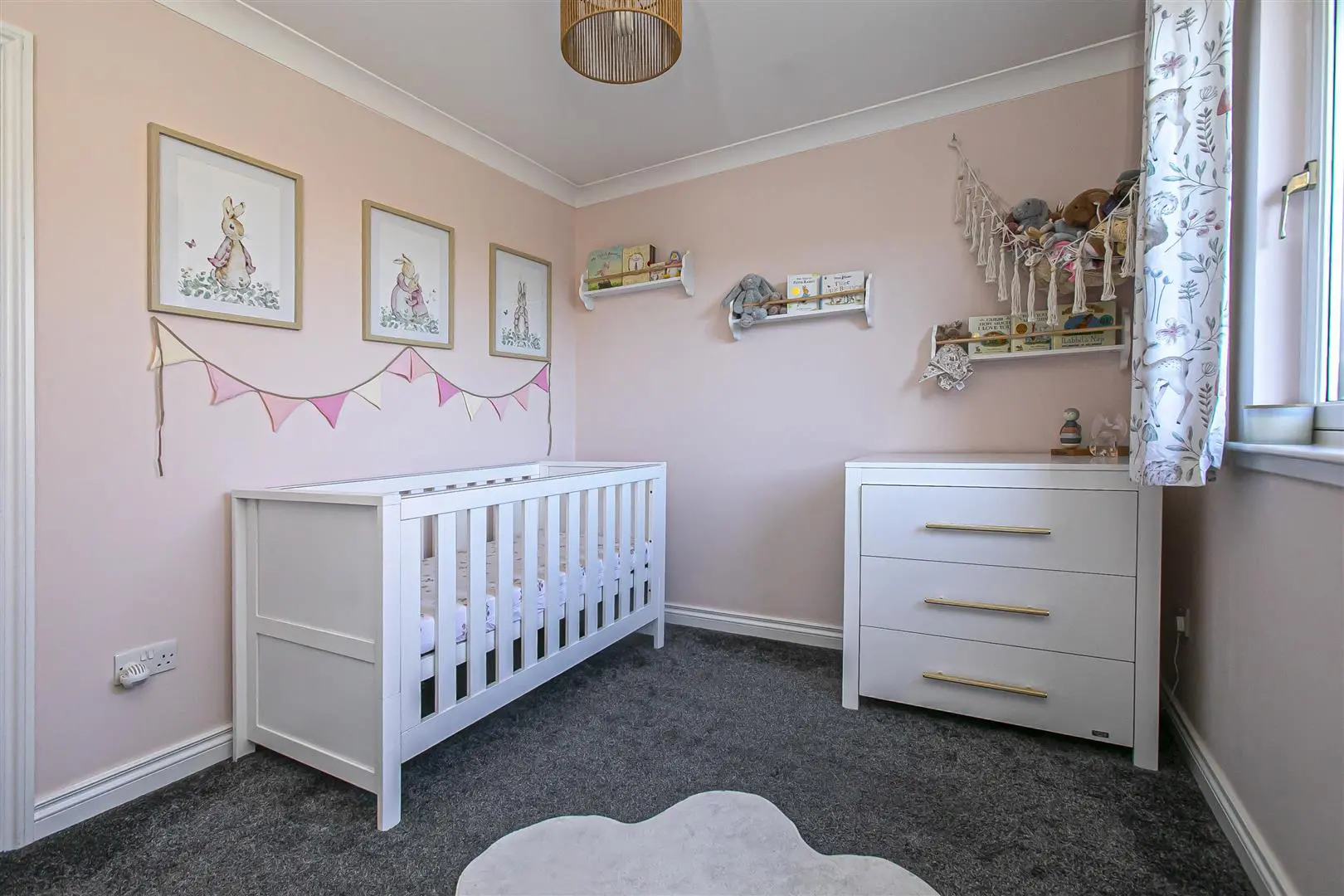 All floor coverings, blinds, bathroom and light fittings together with integrated appliances and garden shed.