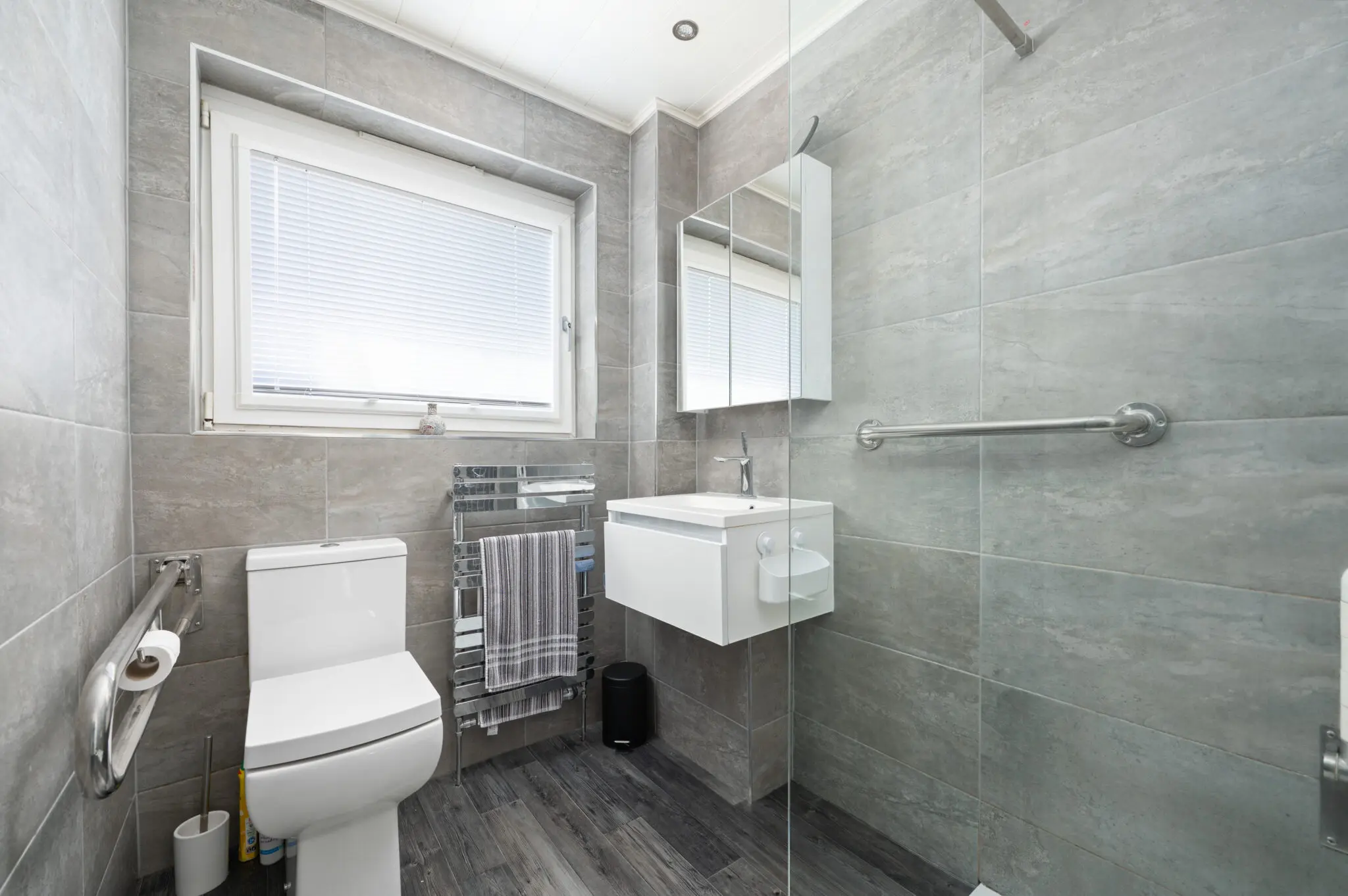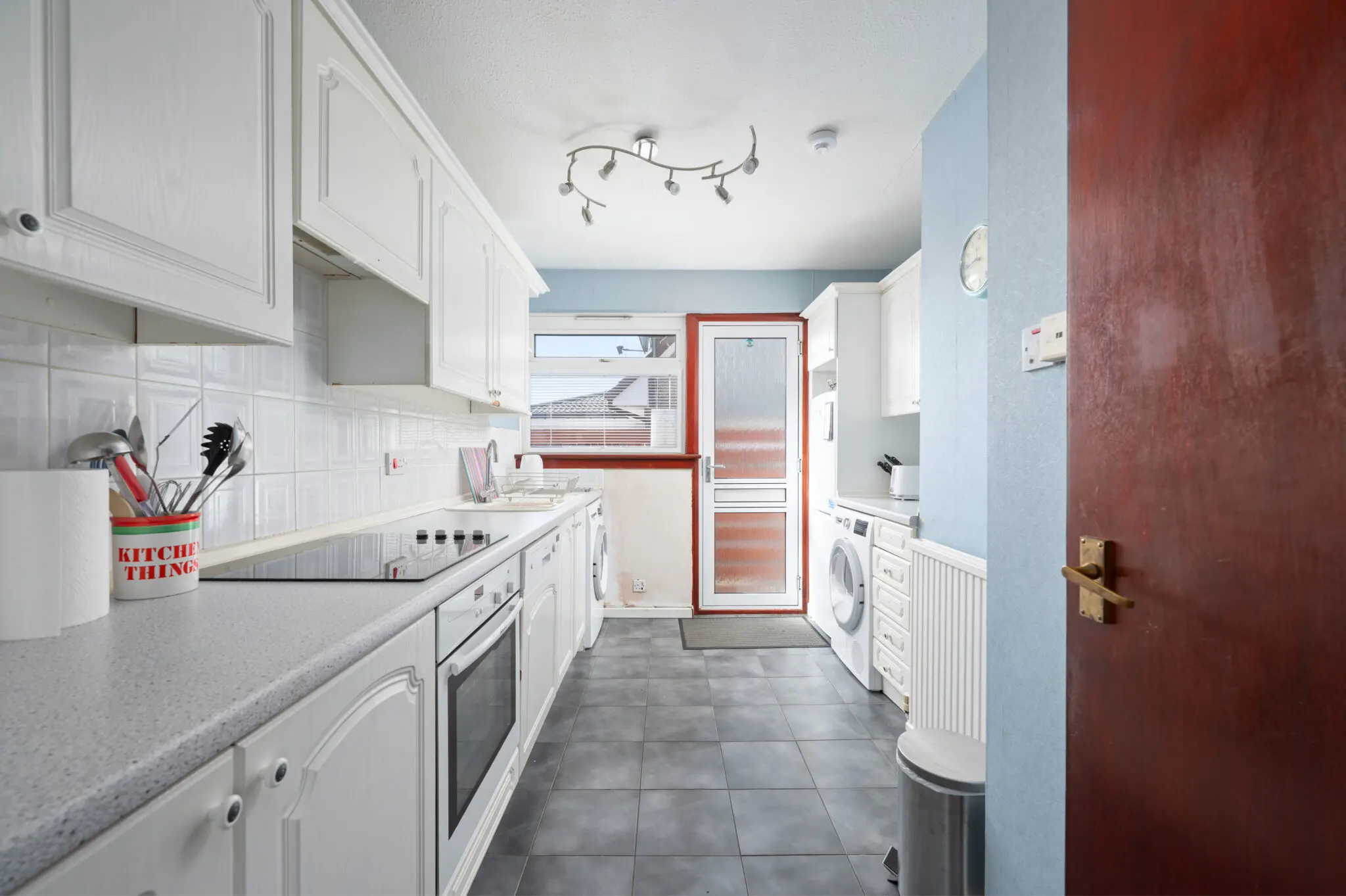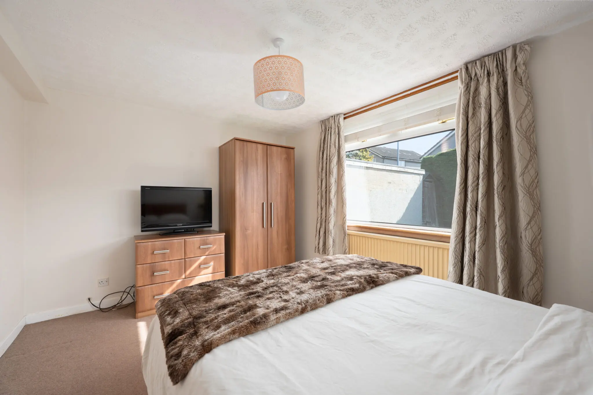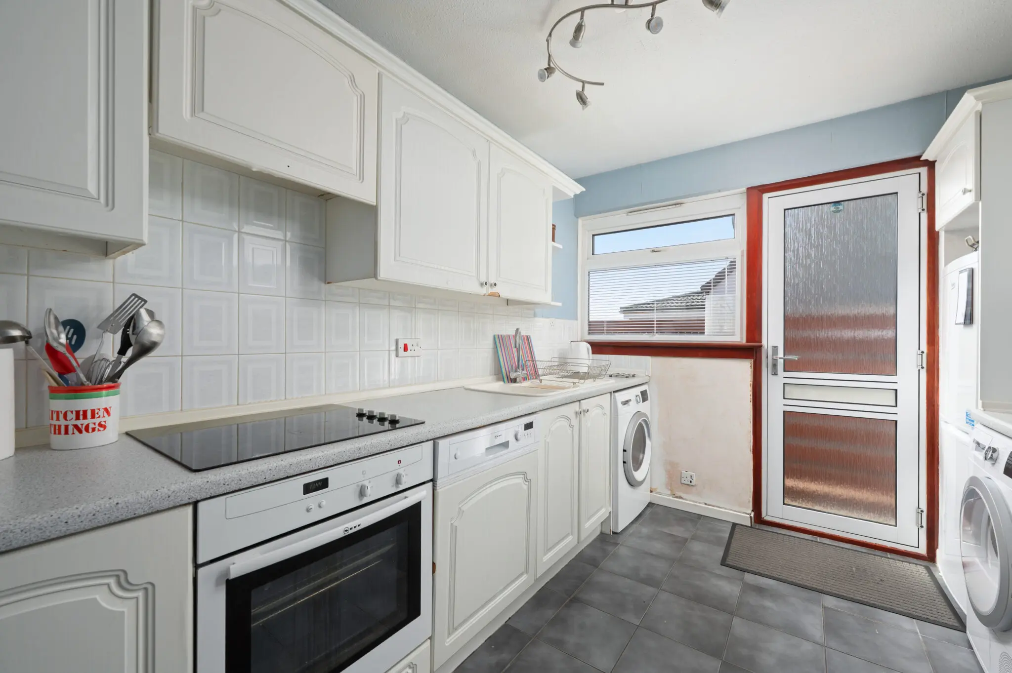 All floorcoverings, blinds, curtains, bathroom and light fittings together with integrated appliances, Bosch washing machine and tumble dryer.
