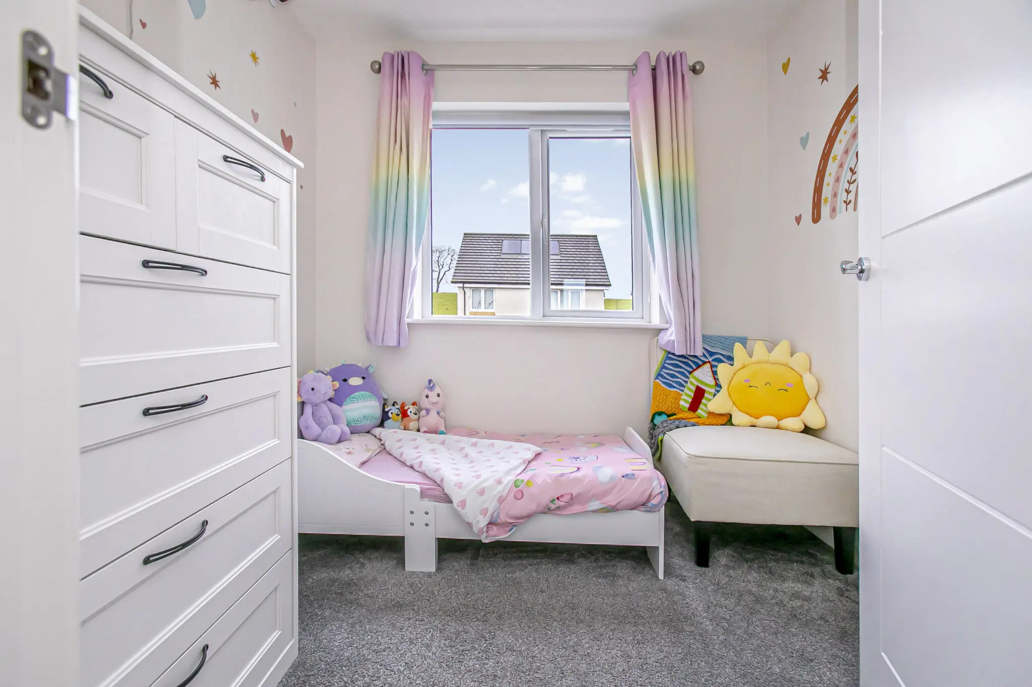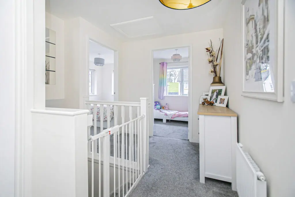 This well-presented home offers comfortable and modern accommodation over two levels, ideal for families, first-time buyers, or those seeking a move-in ready property. The ground floor comprises a welcoming entrance hall leading to a bright and spacious living room, along with a well-appointed kitchen with space for dining. A convenient WC and useful storage complete this level. Upstairs, the property features three bedrooms, including a principal bedroom with en-suite facilities. A family bathroom serves the remaining bedrooms, with additional storage available from the landing. Access to floored attic with lighting. Situated within a popular residential area of new build homes in Hill of Beath, this property enjoys a peaceful setting at the end of the cul-de-sac, while remaining close to local amenities, schooling, and transport links.