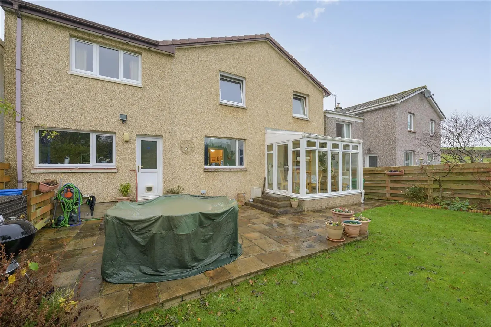 Quietly positioned in a private cul de sac within the ever popular village of Carnock is this four bedroom detached villa with private and secluded gardens with open outlook over farmland and beyond. The property is generous throughout and benefits from double driveway and integrated garage. The accommodation is well presented and briefly comprises entrance vestibule with access to the garage, hallway with storage and wc, lounge/diner leading to conservatory, fitted breakfasting kitchen with separate utility room on the ground floor. Stairwell leads to split level landing with principal bedroom with en suite facilities and study area, three further bedrooms and four piece family bathroom. The gardens are well maintained with mature plants and shrubs and patio area, they are also fully enclosed providing a child and pet safe environment. The property is double glazed with gas central heating.