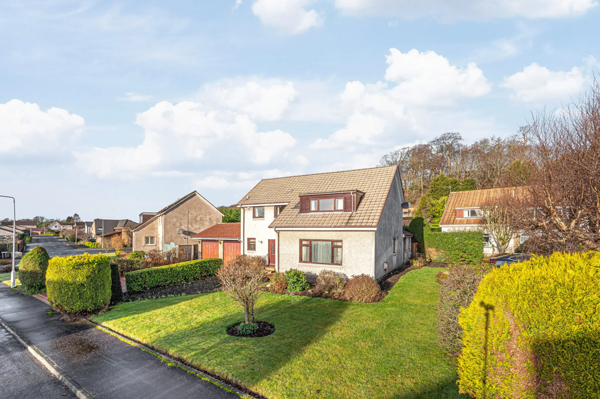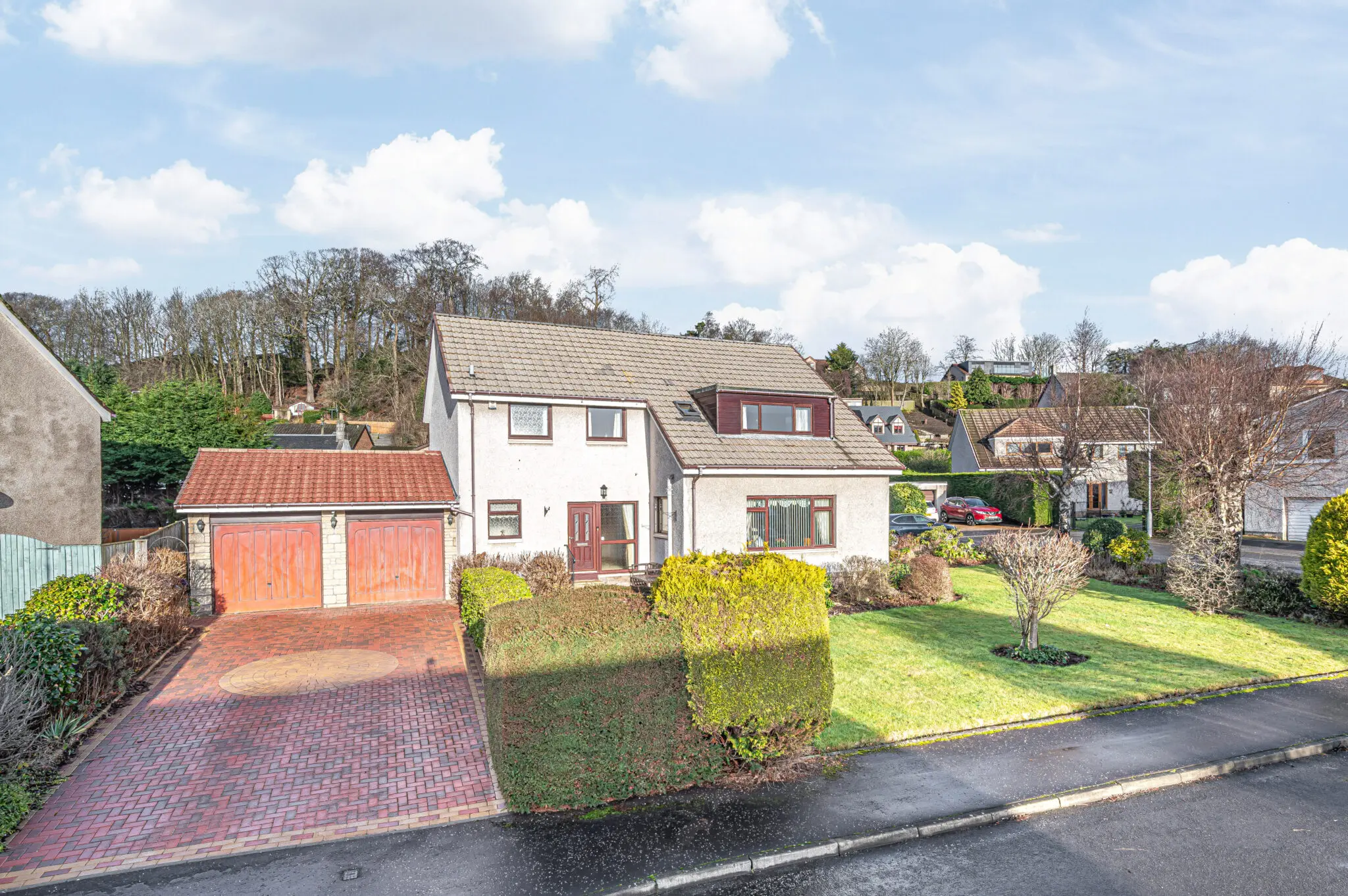 We are delighted to bring to the marekt this exceptional executive detached villa situated in the ever popular West Fife village of Crossford. Nicely positioned within the estate in a quiet cul-de-sac is this family home offering substantial living accommodation which offers flexibility throughout. The subjects are nicely presented and briefly comprise entrance hall, w.c facilities, excellent storage, sittingroom with feature living flame gas fire, dining room, further family room, breakfasting kitchen, lounge/snug and utility room. On the upper level there are four double bedrooms all with fitted wardrobes and master en-suite with family bathroom. Access to attic. The garden and grounds are well maintained with patio and seating areas offering an idyllic haven all year round. They are fully enclosed providing a child and pet safe environment with double monobloc driveway leading to double garages. There is ample parking and visitors parking. This lovely home is double glazed with gas central heating throughout.