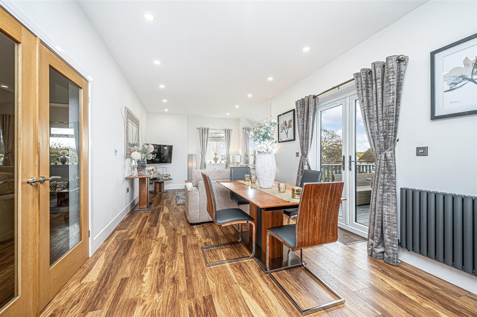 We are delighted to bring to the market the opportunity to purchase this stunning family home occupying an enviable plot in one of Dunfermline's sought after locations. The property has been extended and renovated over the years to a "show home" standard, being offered in pristine move in condition with high specification fixtures and fittings throughout. It is ideally placed for transport links to Glasgow, Edinburgh and beyond with the train station a short walk away and Halbeath park and ride a short drive. The accommodation comprises on the ground floor entrance vestibule, reception hallway with stairs to upper level, doors lead to open plan lounge, dining and kitchen area. French doors then open onto the bespoke decking area providing a fantastic outside space ideal for al fresco entertaining. Two generous double bedrooms and newly fitted shower room completes the ground floor accommodation. On the upper level there are two further double bedrooms and bathroom. The property has excellent storage throughout, is double glazed with gas central heating. The gardens benefit from a south westerly aspect and have been beautifully landscaped to the front and rear, are fully enclosed to the rear with a further patio area to maximise being able to enjoy the weather. Driveway for three vehicles leads to garage. Essential viewing.