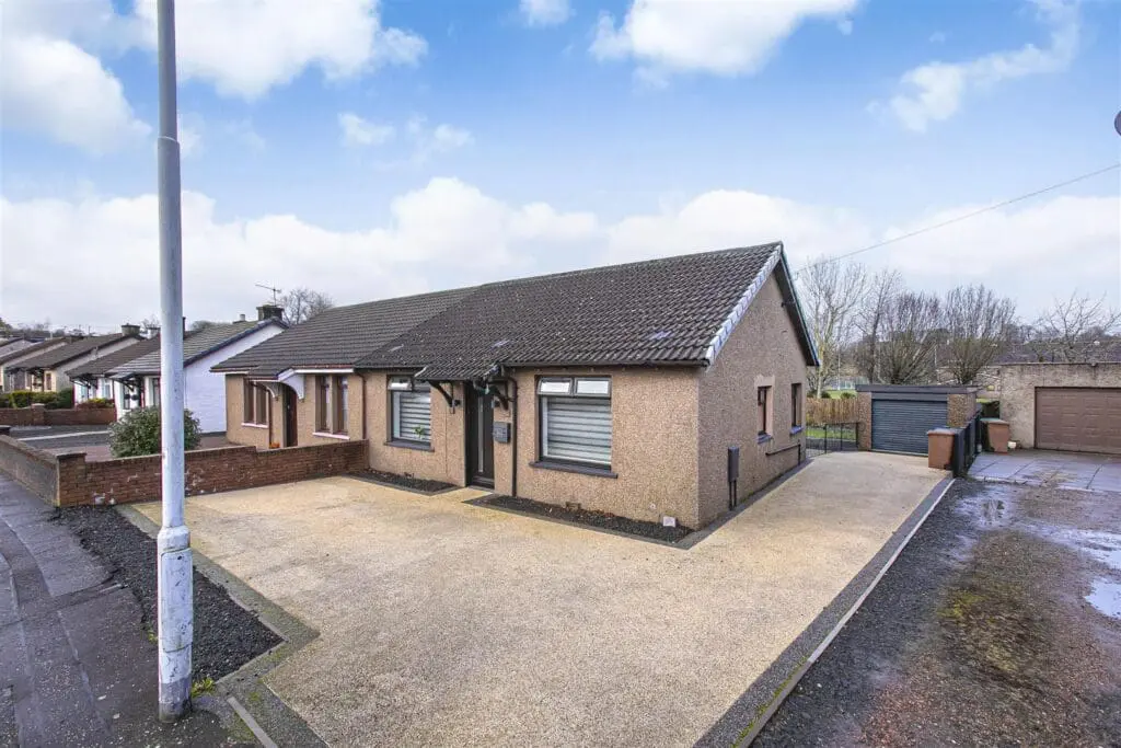 Occupying an enviable plot with generous gardens to rear is this three bed semi detached bungalow with parking for several vehicles and leading to detached single garage. The outdoor space is excellent and easy to maintain with seating and decking area providing a child and pet safe environment. The property is a credit to the present owner being offered in move in condition with modern fixtures and fittings throughout. The subjects briefly comprise entrance vestibule, reception hall, lounge with open plan aspect to fitted kitchen. The lounge has open views over the garden with patio doors. There are three bedrooms and shower room. Good storage and attic. The property is double glazed with gas central heating.