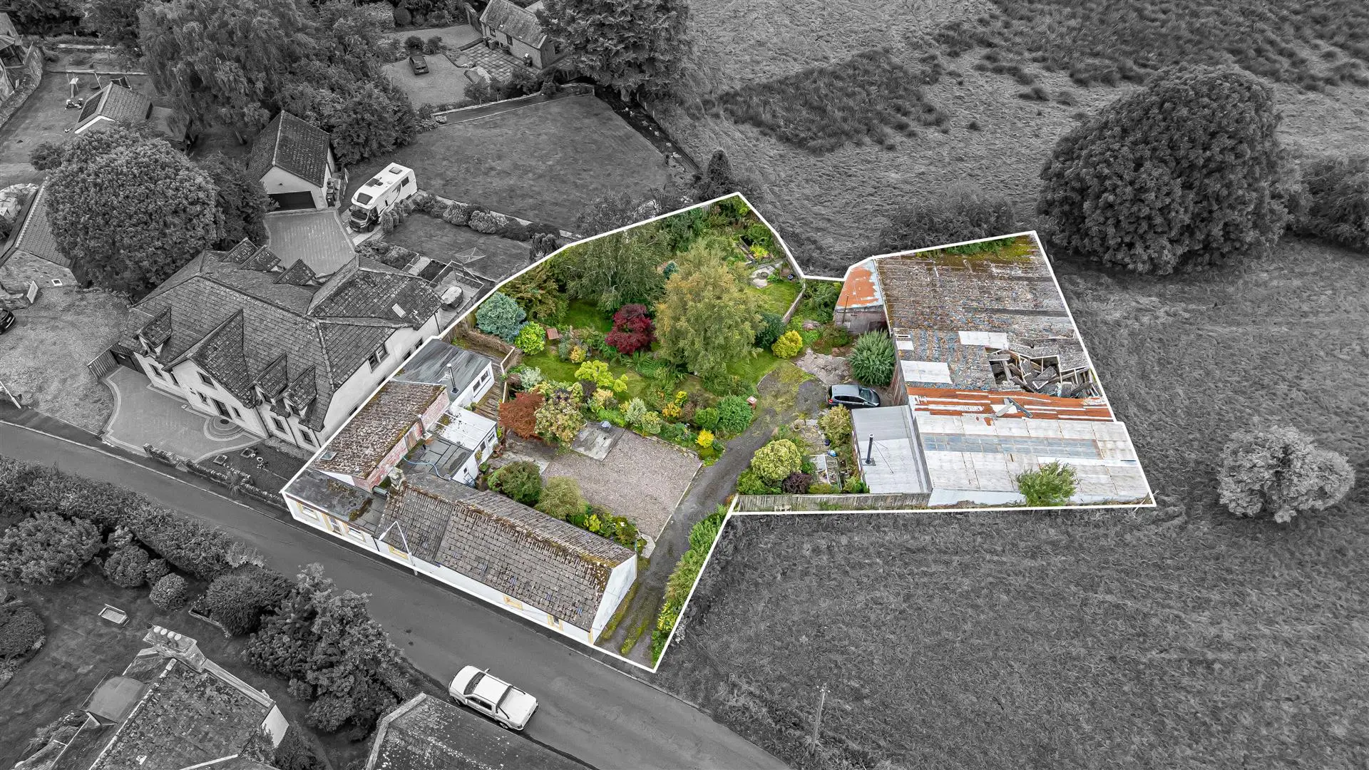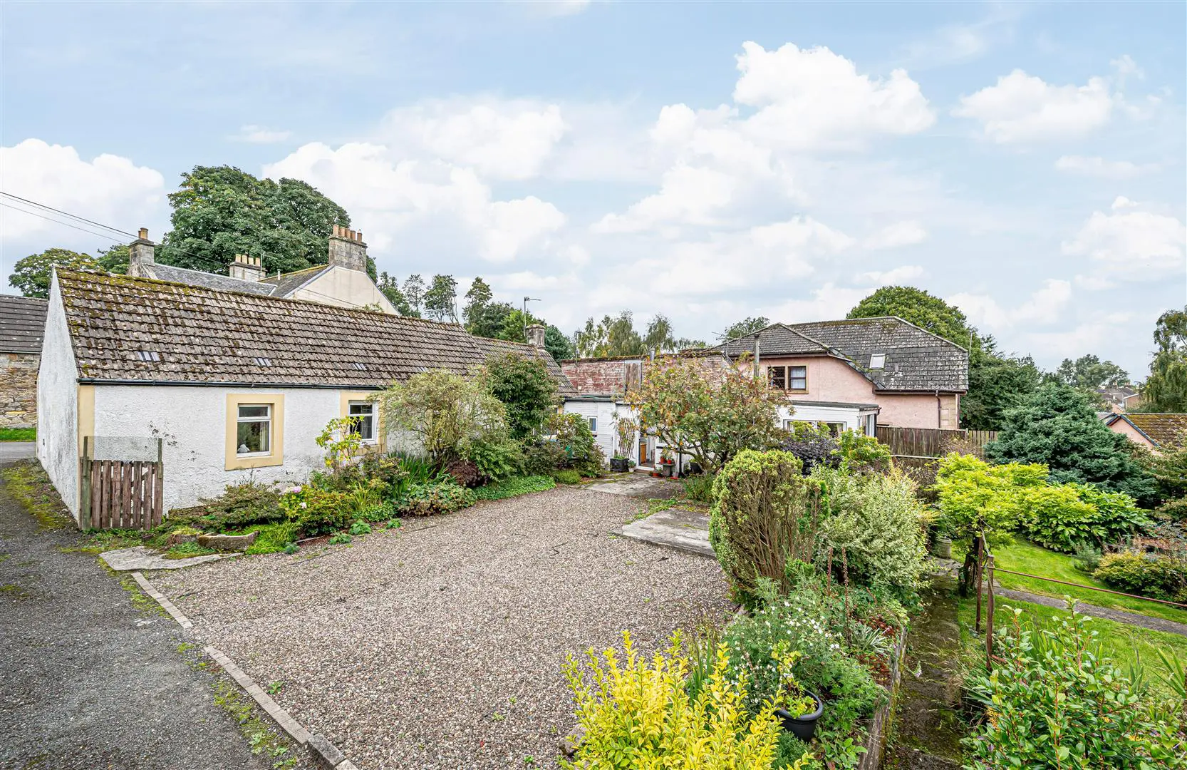 Excellent development opportunity. The property has Planning Permission in principle for the erection of three dwellings and associated works (with demolition of the existing house and outbuildings). Ref 25/01366/PPP . The existing house is a charming 1890's Victorian cottage, namely "Drumfrosk" which has been extended in areas over the years and enjoys a marvelous semi rural position in the popular West Fife village of Saline. This home occupies an idyllic 1/2 acre (approx) site with uninterrupted views over farmland and countryside. A truly beautiful location for any buyer or developer looking for semi-rural living yet a short walk to the local shop. The cottage itself briefly comprises entrance hall, storage, lounge or third bedroom, dining room, sun room, conservatory, kitchen and utility area, two double bedrooms with master en-suite and shower room. The property is partially glazed with gas central heating and wood burner in lounge. The garden and grounds are extensive, mature and well stocked. There is a large outbuilding/farm shed and various sheds off. The driveway gives access for many vehicles.