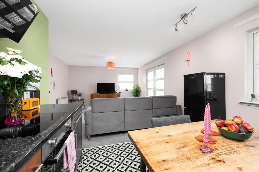 This stylish and well-proportioned two-bedroom top floor apartment offers modern, open-plan living within a popular residential development, ideally suited to first-time buyers, professionals or investors. The property is centred around a spacious kitchen/living/dining room, providing an excellent contemporary living space with ample room for both relaxing and entertaining. The kitchen is well laid out with good storage and workspace, seamlessly integrated into the main living area. There are two well-proportioned double bedrooms, including a principal bedroom benefiting from en suite facilities and built-in storage. The second bedroom also offers good proportions and flexibility for guests, home working or additional living space. A modern family bathroom and welcoming hallway complete the accommodation. Externally, the property benefits from well-maintained communal grounds with residents parking and is located within easy reach of local amenities, transport links and Rosyth town centre.