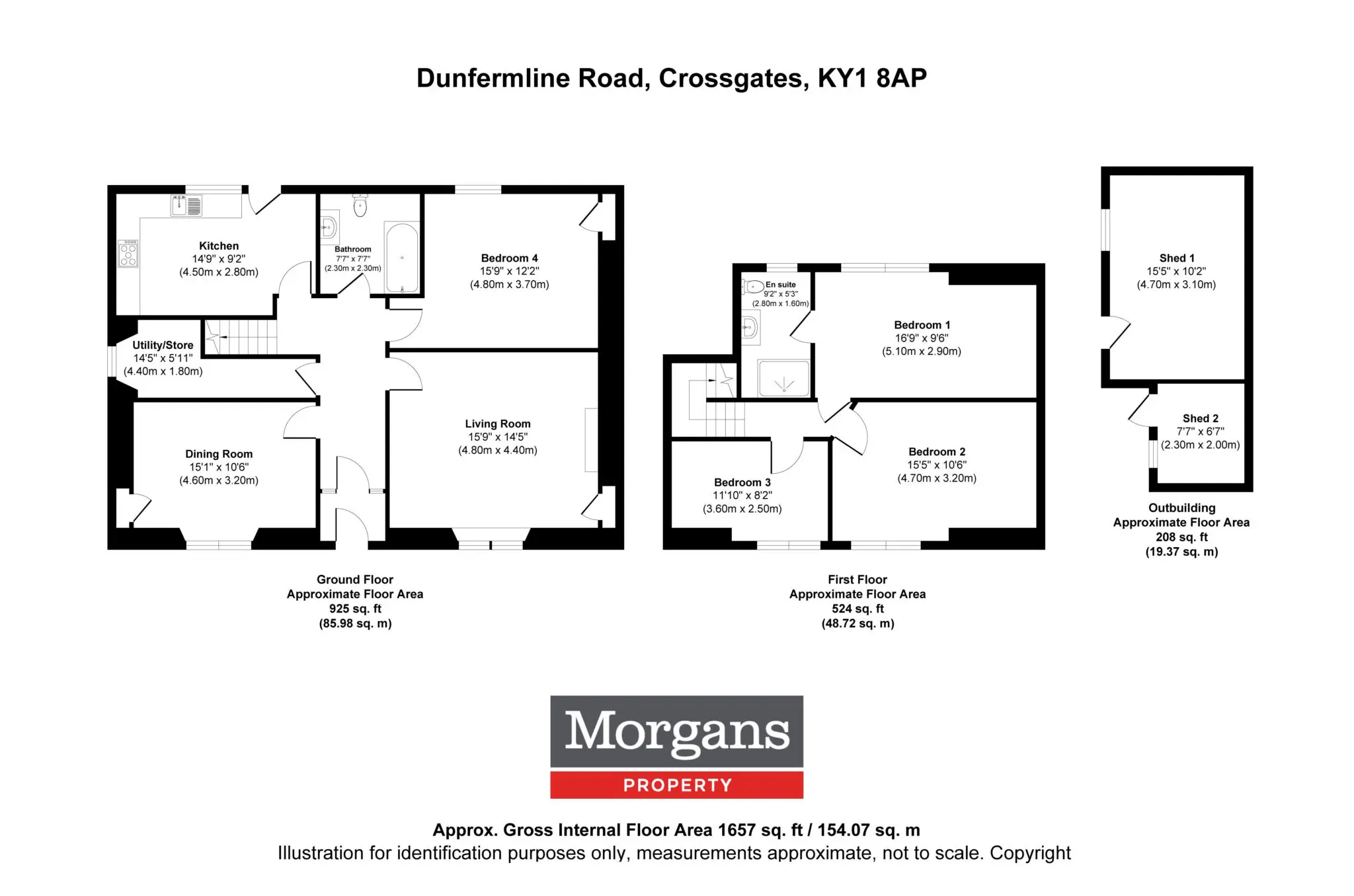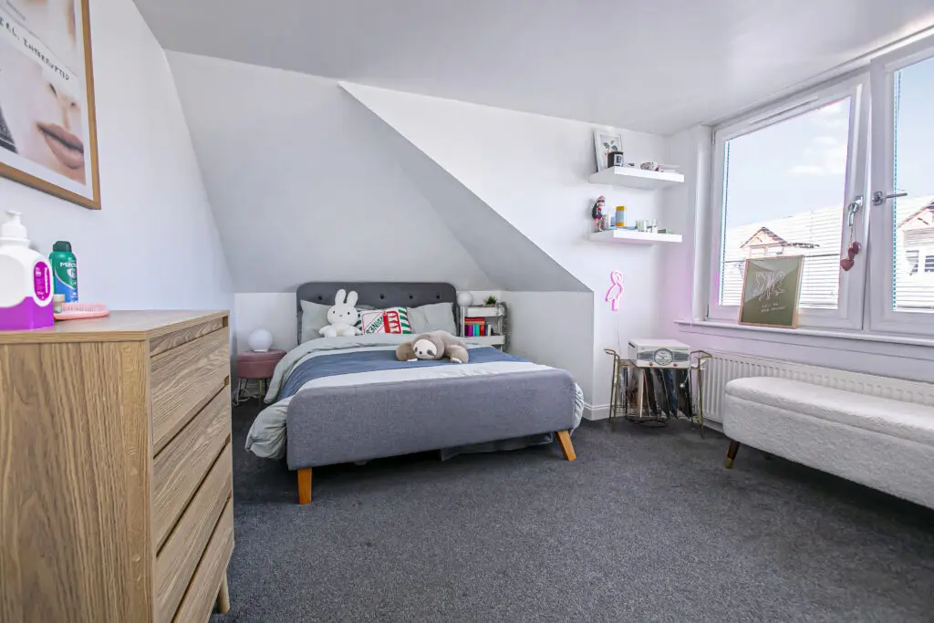 This substantial and well-proportioned four-bedroom detached villa offers generous and flexible accommodation over two levels, ideally suited to family living. The ground floor comprises a spacious and bright living room, complemented by a separate dining room ideal for entertaining. The well-sized kitchen provides ample workspace and storage and is further enhanced by a useful utility/store room. A modern family bathroom and a versatile fourth bedroom on this level offer flexibility for guests, home working or multi-generational living. On the upper floor, the property features three well-proportioned bedrooms, including a generous principal bedroom with en suite facilities. Two further bedrooms provide comfortable accommodation and are supported by good storage throughout. Externally, the property benefits from private driveway and landscaped gardens to the rear with decked area with a southerly aspect, outbuildings including two sheds, offering excellent additional storage or potential for workshop use. The home is set within a convenient and sought-after location, close to local amenities, schooling and transport links.