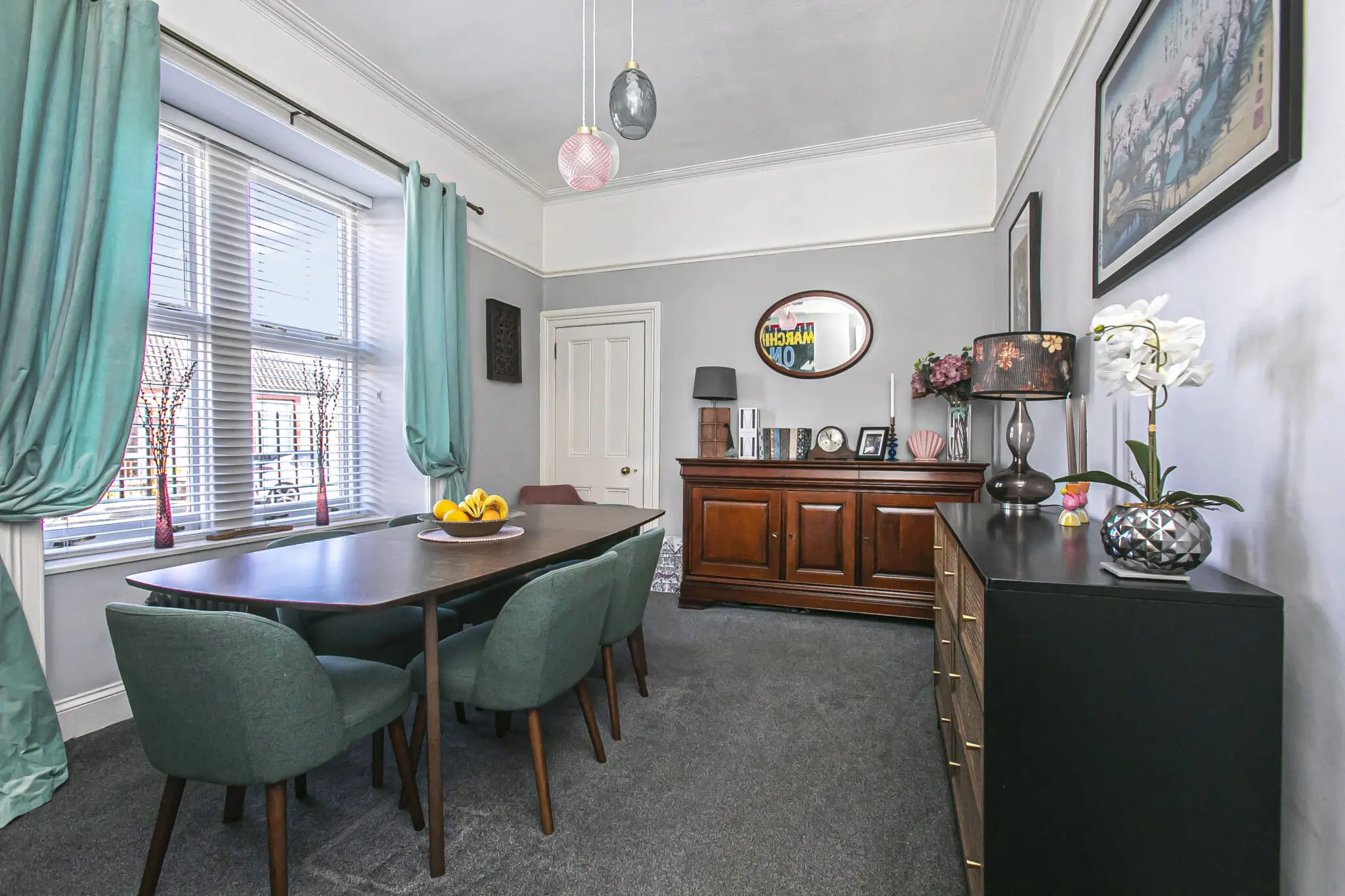 All floor coverings, blinds, bathroom and light fittings together with integrated appliances.