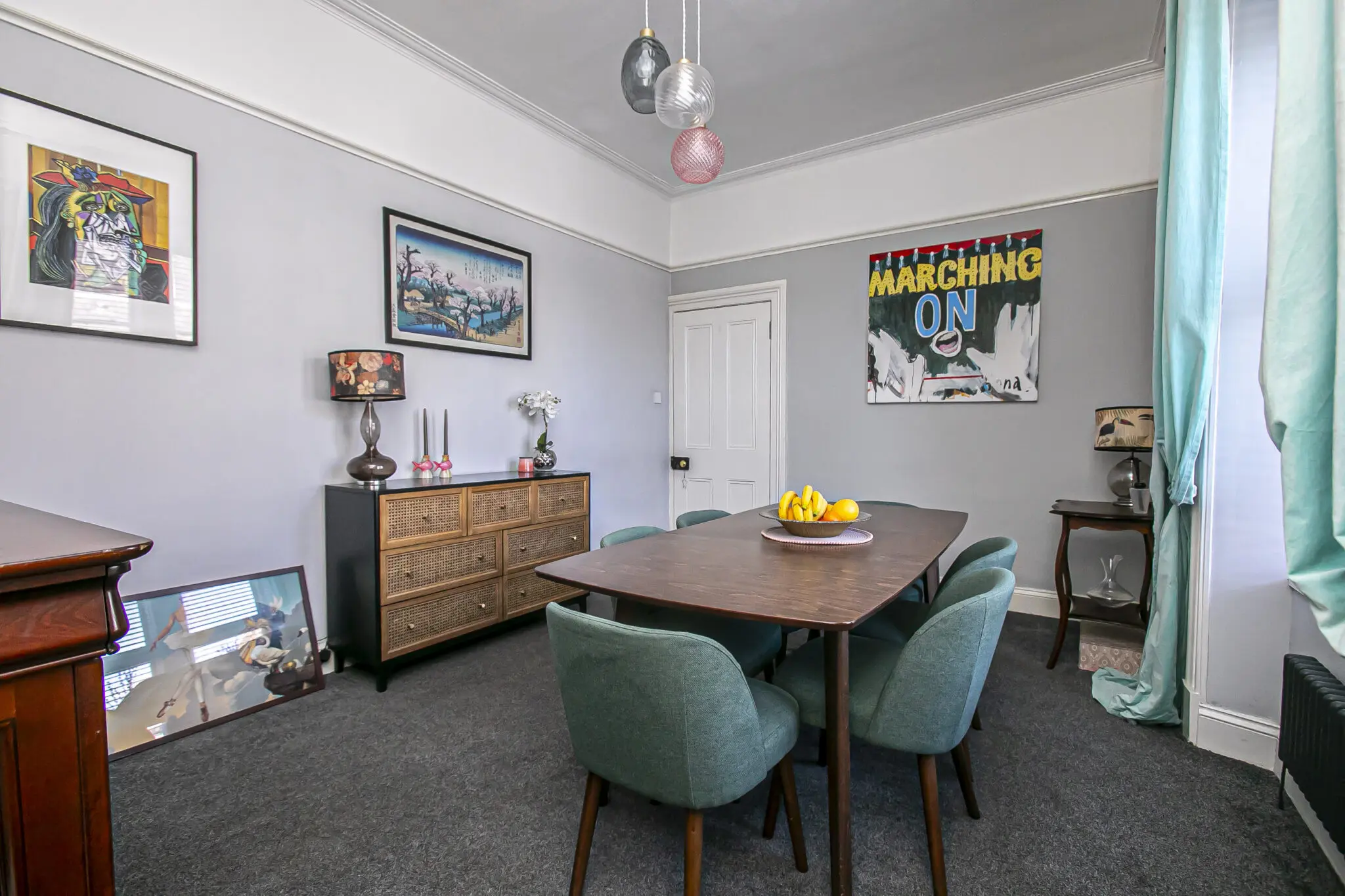 - Bright living room and separate dining room
