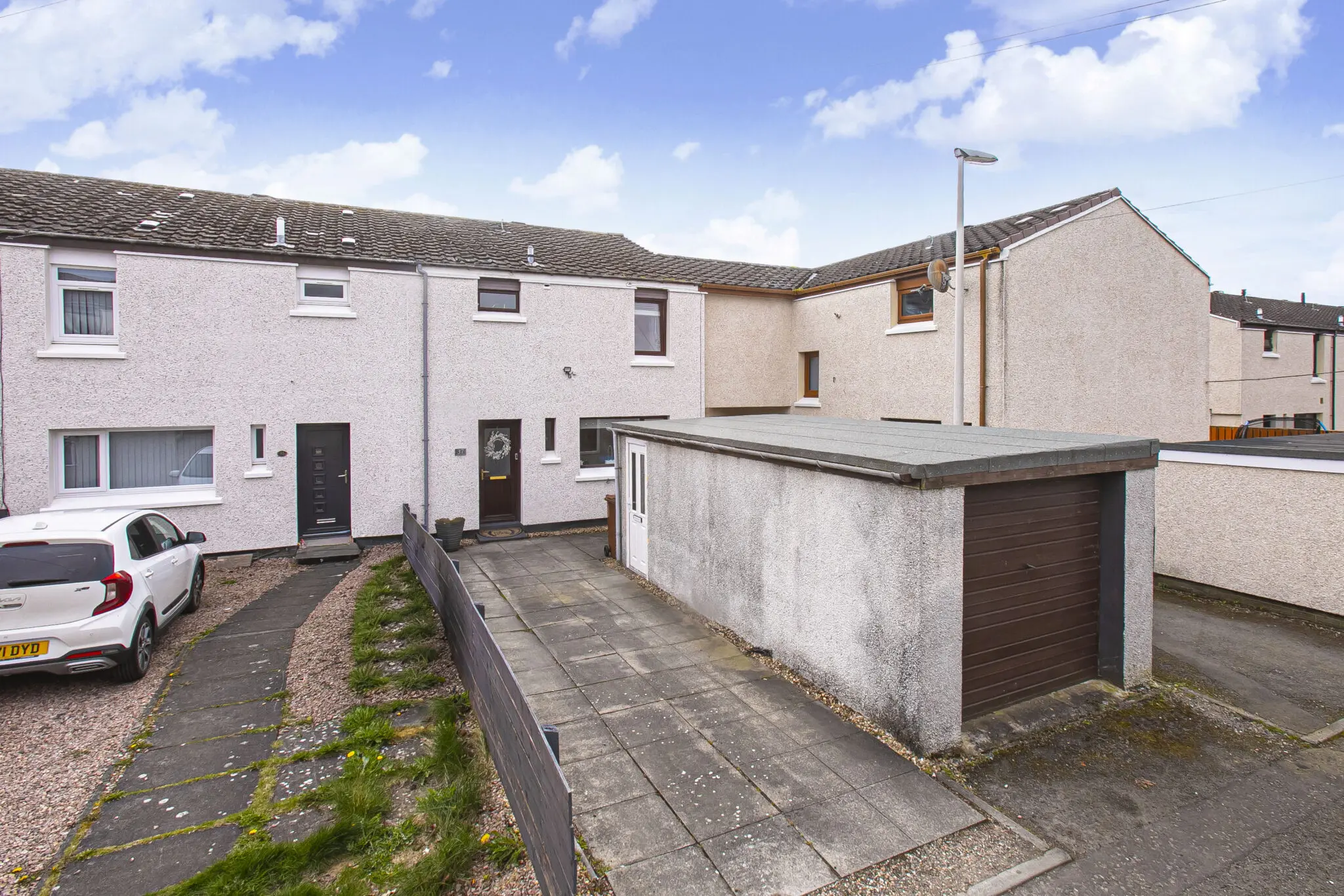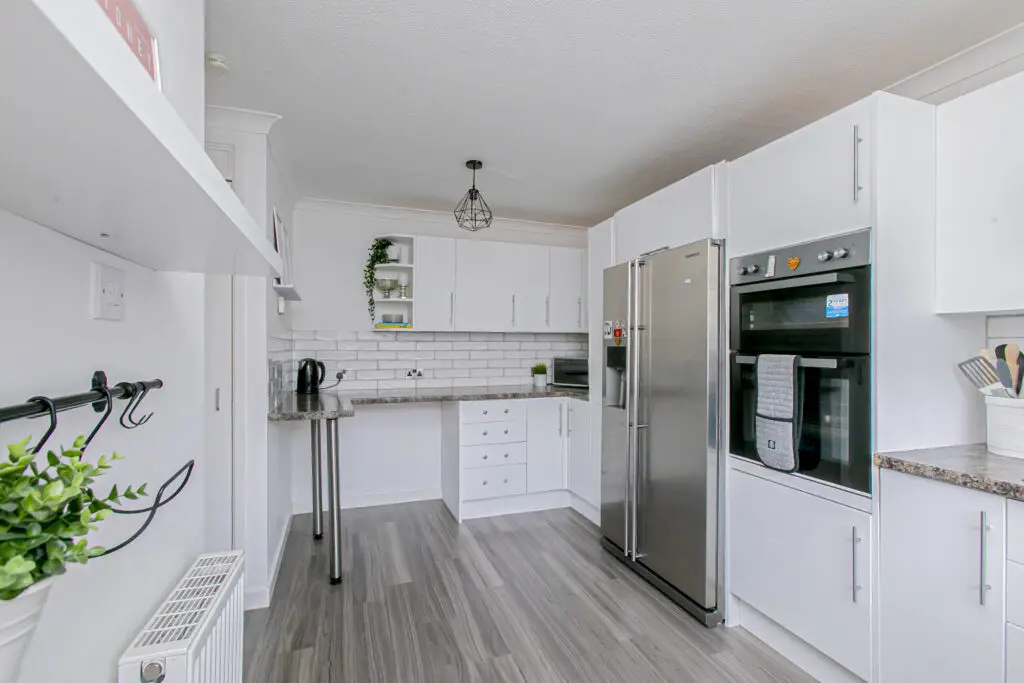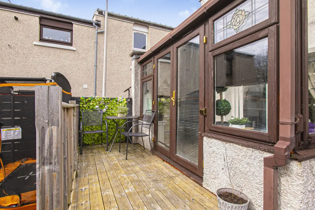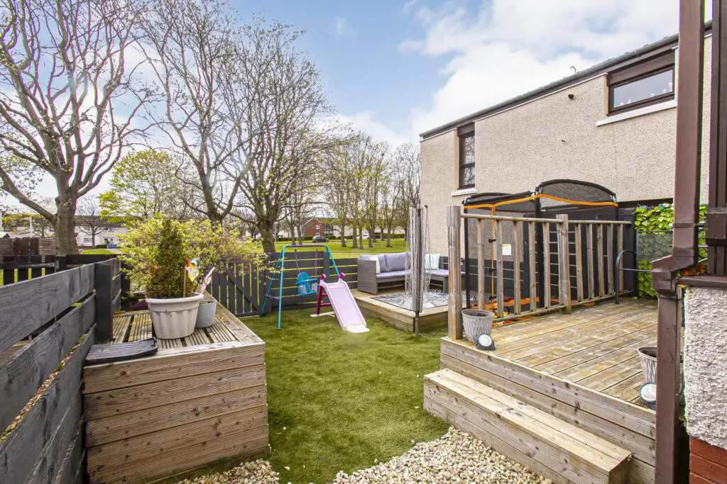 Excellent three-bedroom end terraced home offering superb and well-proportioned accommodation over two floors, extending to approximately 1,120 sq ft and suitable for a family or those requiring flexible living space. The ground floor provides a stylish lounge, a well-sized fitted breakfasting kitchen, a ground floor W.C., and a small office. Good storage throughout. A conservatory to the rear offers an additional reception space with access to the gardens. The first floor comprises three bedrooms and contemporary family bathroom. The second bedroom is particularly spacious and all three rooms are well proportioned for family use. Access to attic. The property further benefits from detached garage and double driveway with ample visitors parking. The gardens are well maintained with patio and decking area, an excellent home for entertaining. It is enclosed providing a child and pet safe environment. Situated in Rosyth, KY11 2SW, the property is conveniently placed for local schools, shops, and transport links including Rosyth railway station.