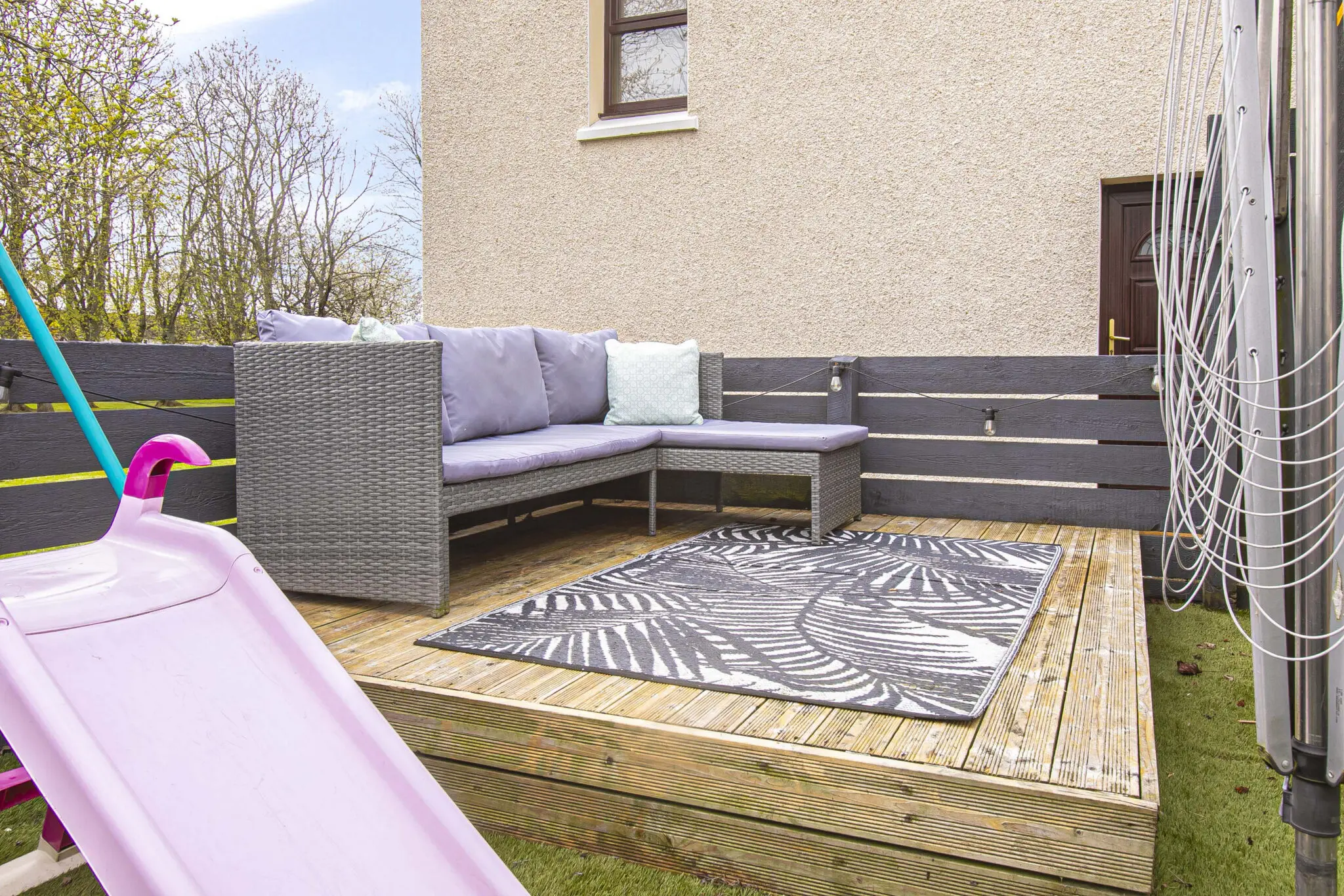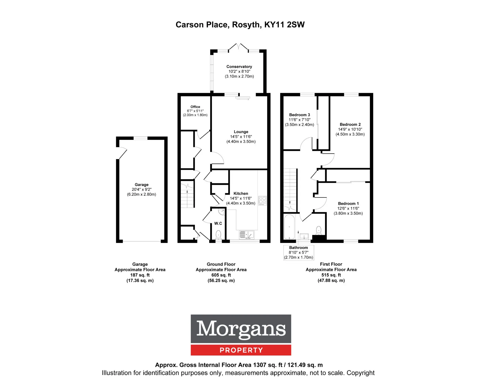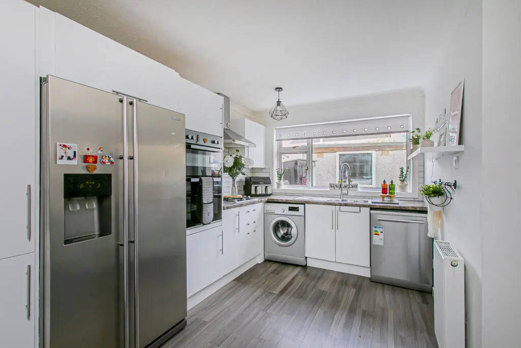 Excellent three-bedroom end terraced home offering superb and well-proportioned accommodation over two floors, extending to approximately 1,120 sq ft and suitable for a family or those requiring flexible living space. The ground floor provides a stylish lounge, a well-sized fitted breakfasting kitchen, a ground floor W.C., and a small office. Good storage throughout. A conservatory to the rear offers an additional reception space with access to the gardens. The first floor comprises three bedrooms and contemporary family bathroom. The second bedroom is particularly spacious and all three rooms are well proportioned for family use. Access to attic. The property further benefits from detached garage and double driveway with ample visitors parking. The gardens are well maintained with patio and decking area, an excellent home for entertaining. It is enclosed providing a child and pet safe environment. Situated in Rosyth, KY11 2SW, the property is conveniently placed for local schools, shops, and transport links including Rosyth railway station.