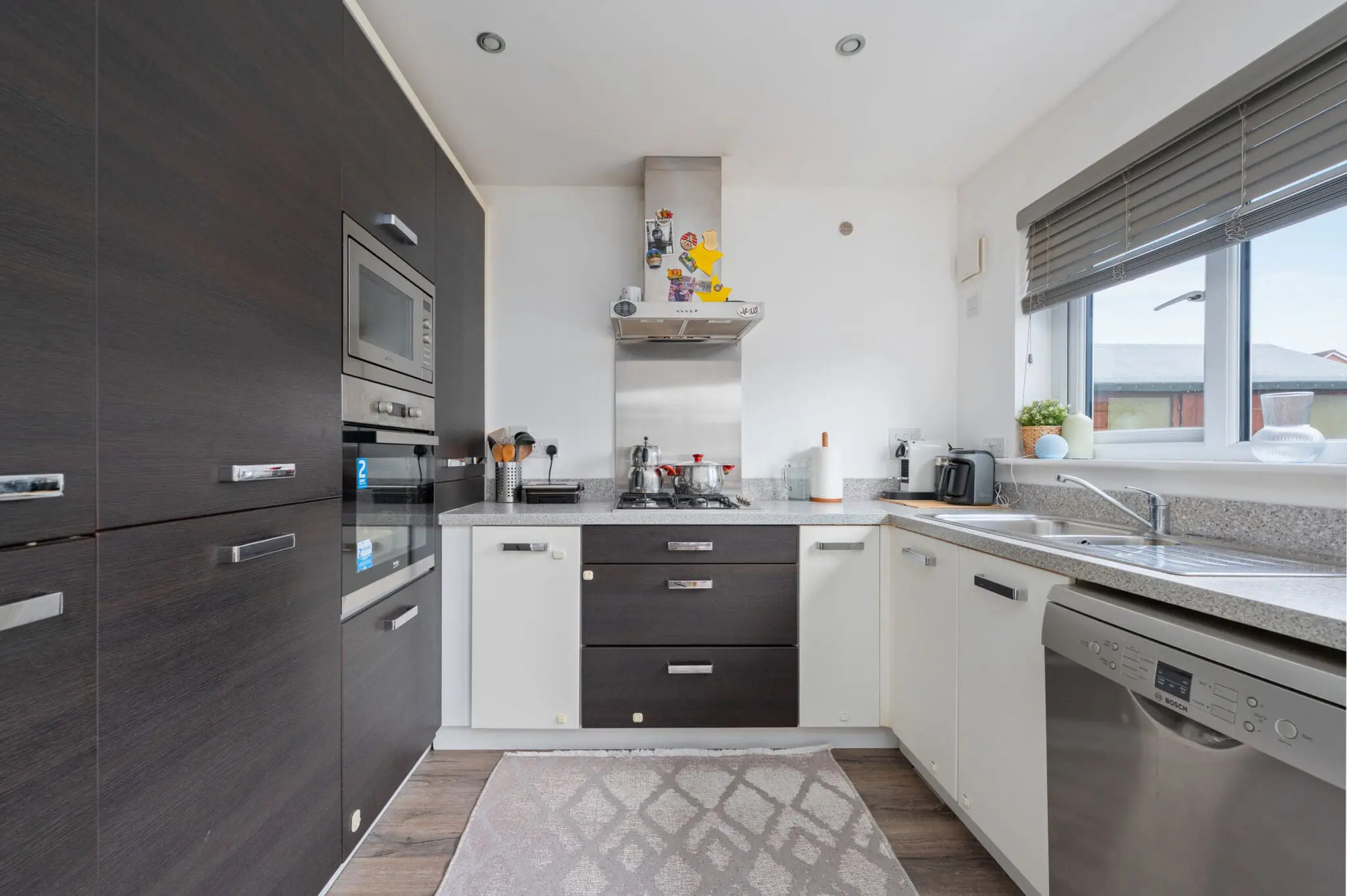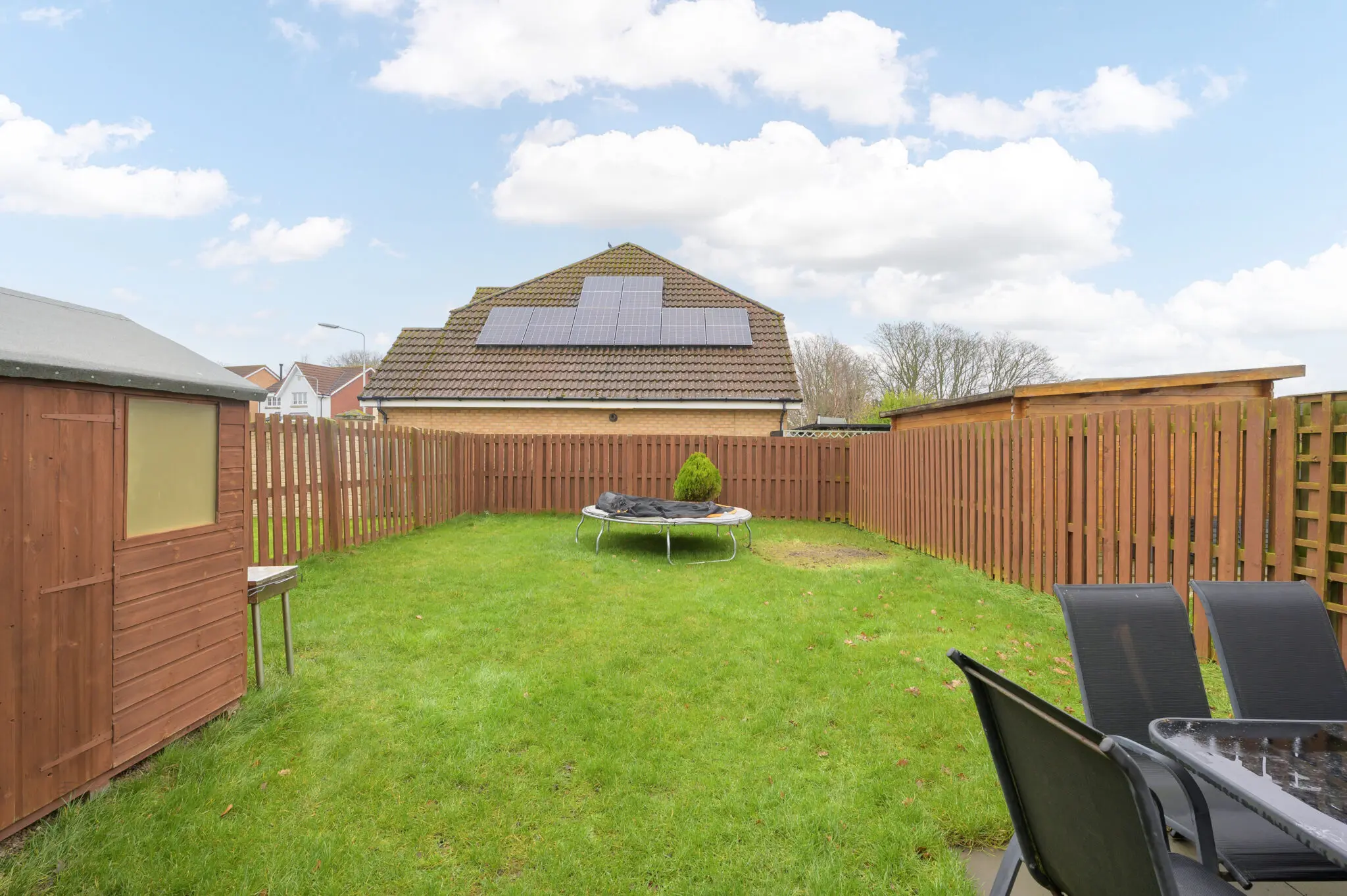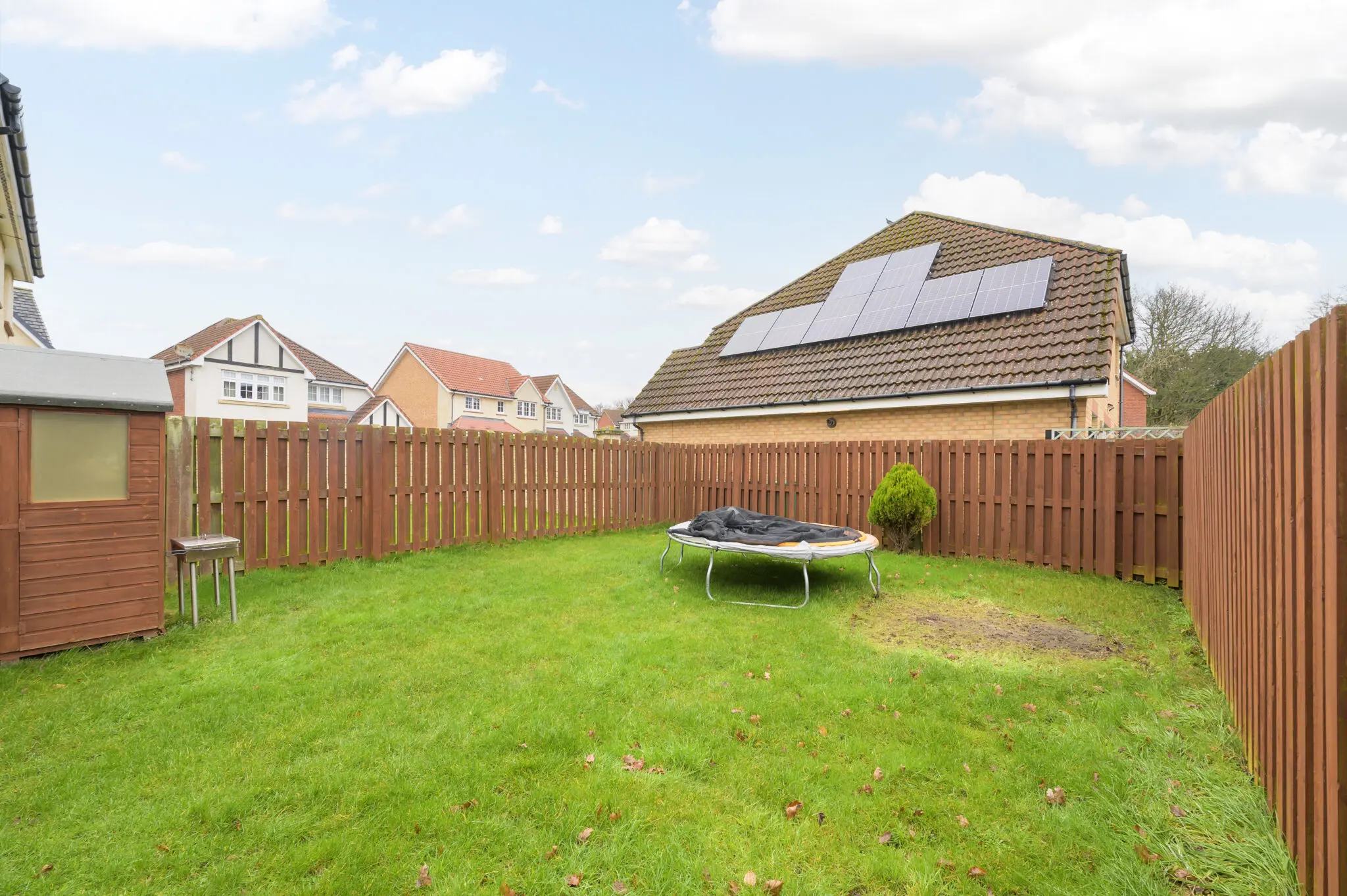 All floor coverings, blinds, bathroom and light fittings together with integrated appliances and garden shed.