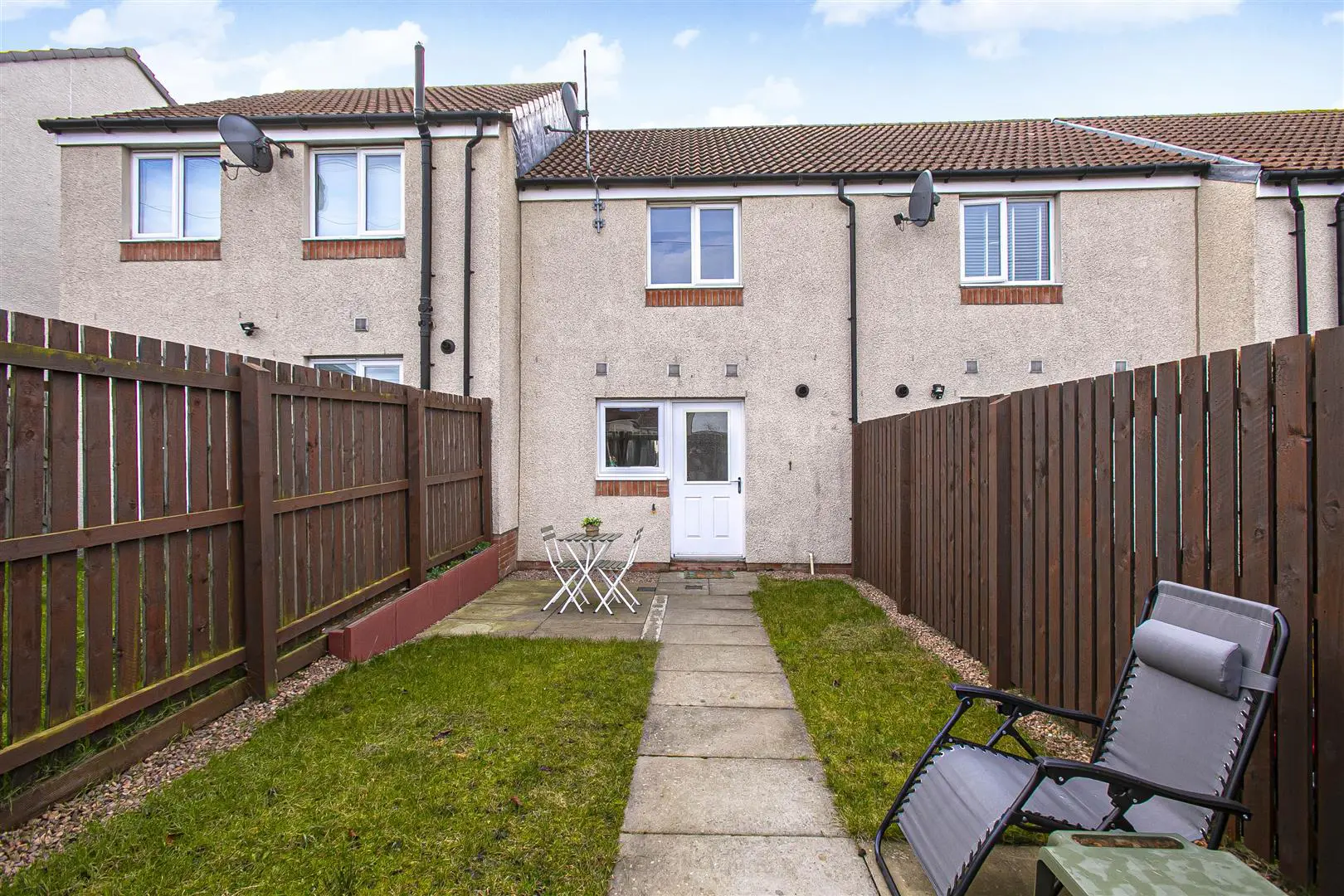 Absolutely lovely mid terraced villa situated in modern exclusive estate in the eastern expansion. The property is offered in nice condition with enclosed easy to maintain garden space providing a child and pet safe environment with patio area and secure gate to rear. There is a private driveway to front and ample visitors parking. This home would be ideal for first time buyers, couples and small families. The property benefits from a slightly elevated position with small playpark adjacent. The subjects briefly comprise; lounge with storage cupboard, breakfasting kitchen with appliances and w.c facilities. On the upper level there are two bedrooms once with storage and bathroom with overhead off mains shower. Access to attic. The property is double glazed with gas central heating.