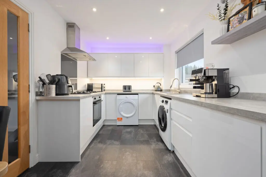 Kelty is well placed for commuting, as it is adjacent to the M90 motorway with easy access to Edinburgh, Perth, Kinross and Dunfermline. In recent years Kelty has developed into a pleasant residential community. The subjects are well placed for easy access to local shops, primary schools, bank, churches, bowling club and other central amenities. There is a regular bus service to the main neighbouring towns of Cowdenbeath, Dunfermline and Kinross. There are bus stops on the main street that goes straight to Edinburgh High street. The Meadows Country Park, Loch Leven Heritage Trail and Loch Fitty are within easy reach offering various leisure and recreational facilities.