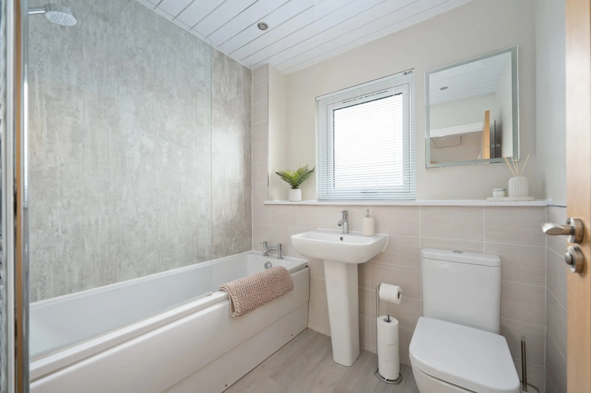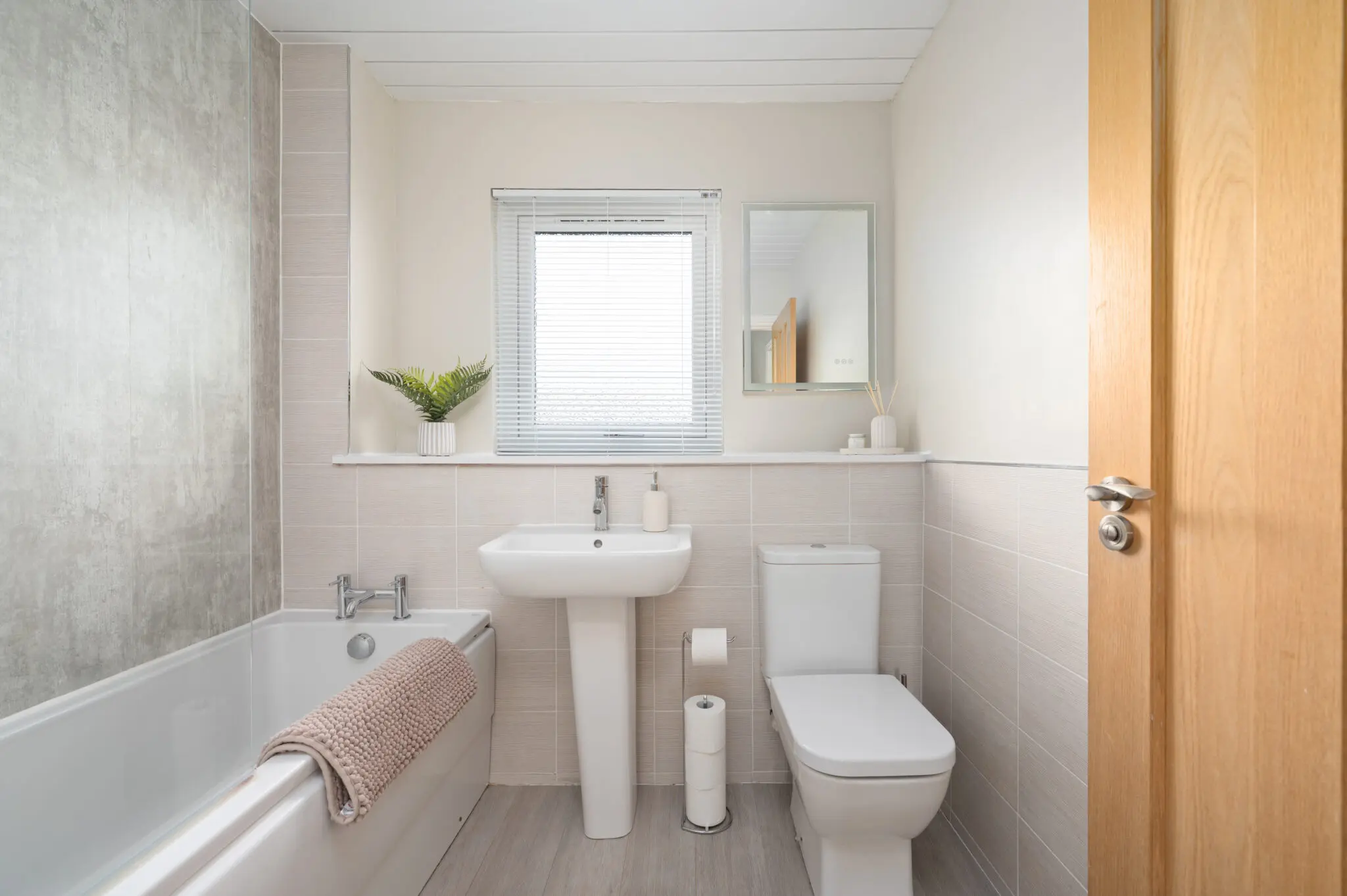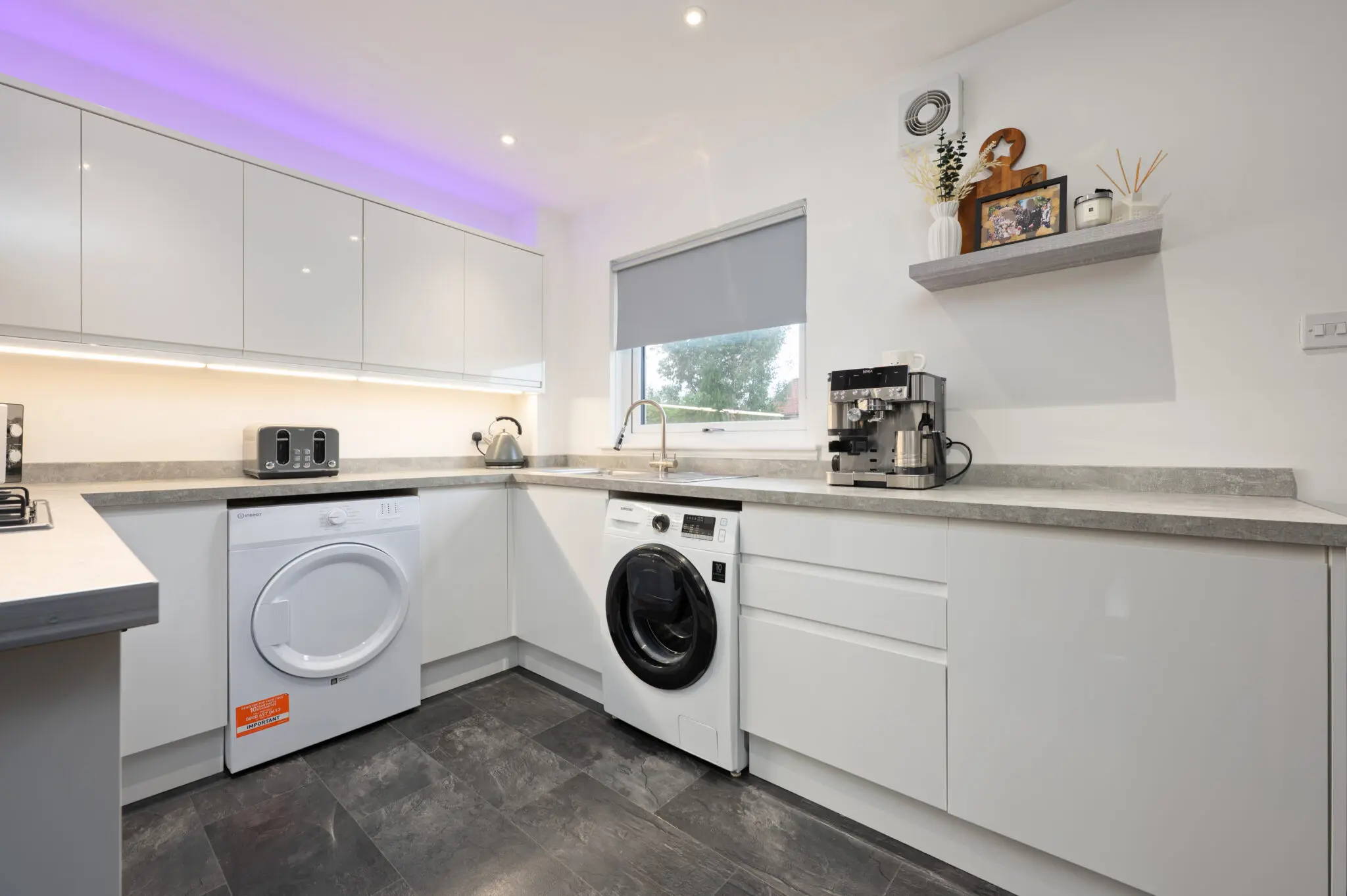 All floor coverings, blinds, bathroom and light fittings together with integrated appliances.