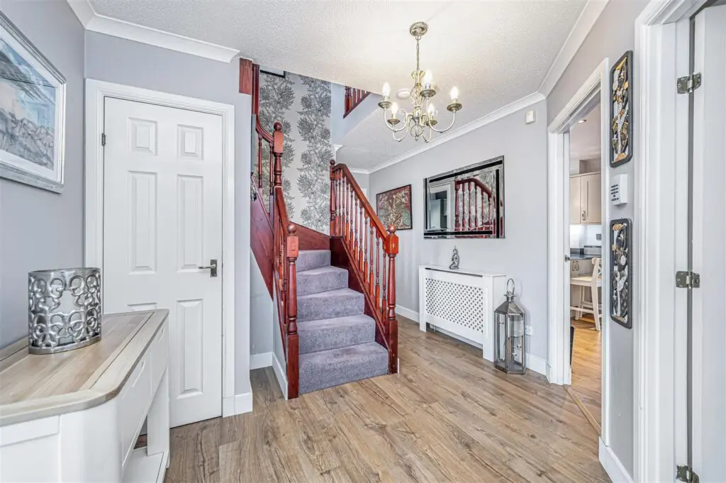 We are delighted to bring to the market this beautiful extended detached family villa, occupying an enviable plot within this sought after and well established estate, with schooling within easy reach and the City Centre within easy walking distance, yet regular transport is available into the city. The property is a credit to the present owners with quality fixtures and fittings throughout. The gardens are generous and well stocked, fully enclosed providing a child and pet safe environment, with raised decking and patio areas making this an excellent home for entertaining. The accommodation briefly comprises reception hallway, w.c facilities and utility room, lounge, separate dining room, modern fitted dining kitchen leading to feature conservatory which has a proper roof installed. On the upper level there are four bedrooms (three with built in wardrobes) and master en-suite. A stunning family bathroom completes this home. Access to attic. The monobloc driveway gives access for several vehicles leading to double garage with power and light within. There is double glazing and gas central heating throughout.