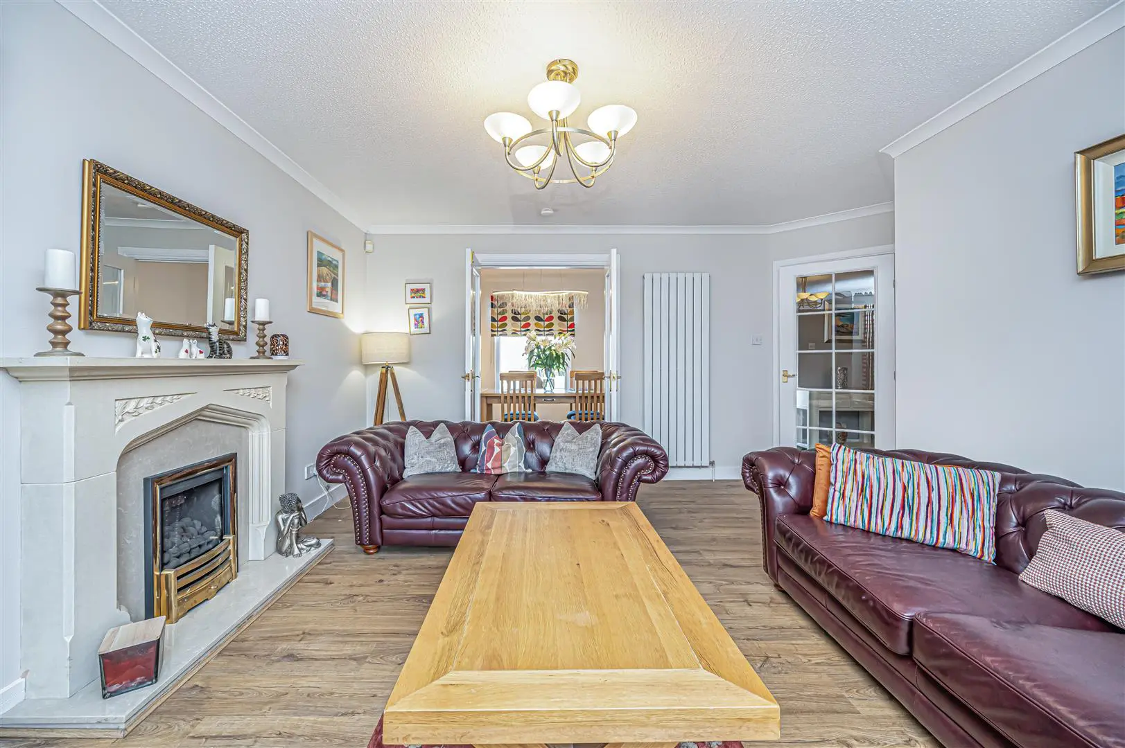 All floor coverings, blinds, bathroom and light fittings together with integrated appliances and garden shed.