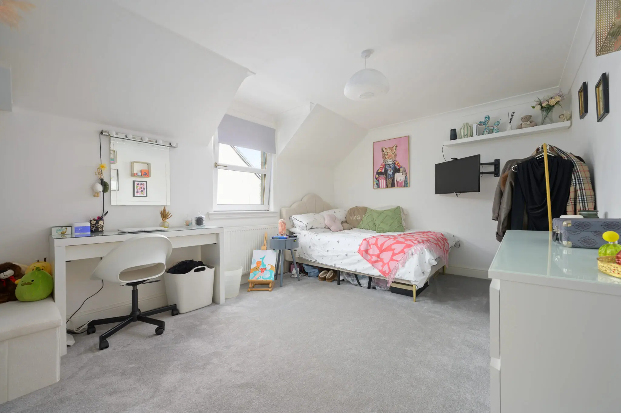 All floor coverings, blinds, bathroom and light fittings together with integrated appliances.