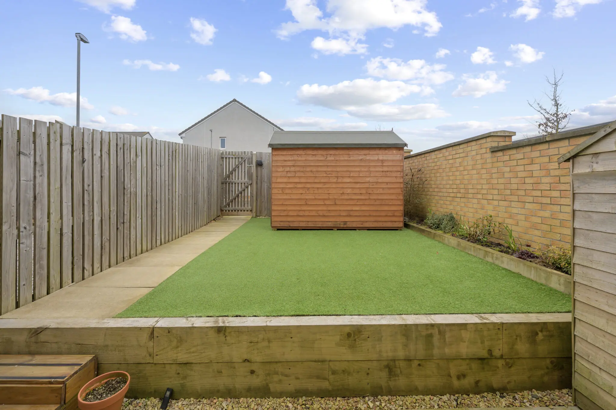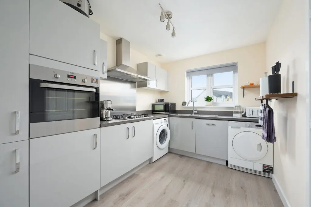 All floor coverings, blinds, bathroom and light fittings together with integrated appliances and garden shed.