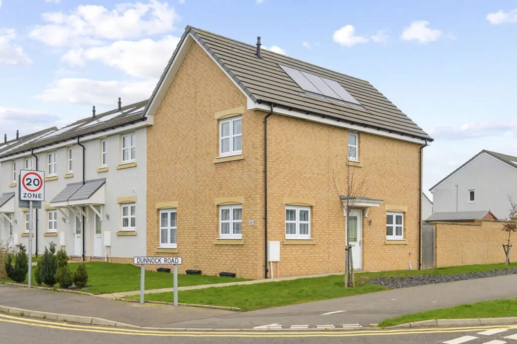 We are delighted to be marketing this modern and stylish three bed end terraced villa built by Miller Homes conveniently placed with direct links to the motorway network making this an ideal home for commuters being close to all retail parks and schooling. The property benefits from private and fully enclosed gardens with allocated parking space to rear and ample visitors parking. The subjects are a credit to the present owner being offered in move in condition and well presented throughout, briefly comprising entrance hall, w.c , storage cupboard, lounge, dining kitchen with french doors to patio and on the upper level three bedrooms with master en-suite and family bathroom. Access to attic. Solar panels with gas central heating throughout make this modern home very economical.