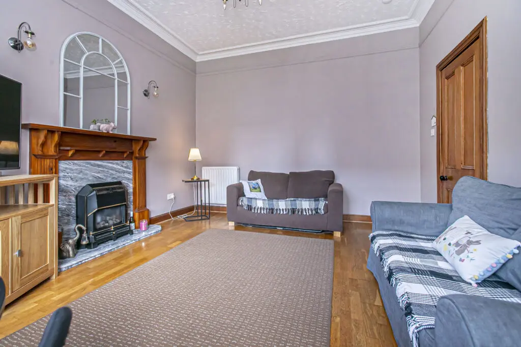 Charming and substantial ground floor traditional dwelling in one of Dunfermline's sought after locations with a short walk into the city centre and all amenities at your fingertips. This period property has many attractive features with original cornicing and flooring to name but a few. The gardens and grounds are well maintained with private and communal outdoor storage. The subjects briefly comprise entrance reception hallway, front facing lounge with decorative fireplace and bay window, kitchen with appliances, bathroom and four bedrooms. The property has sash and case windows and gas central heating.