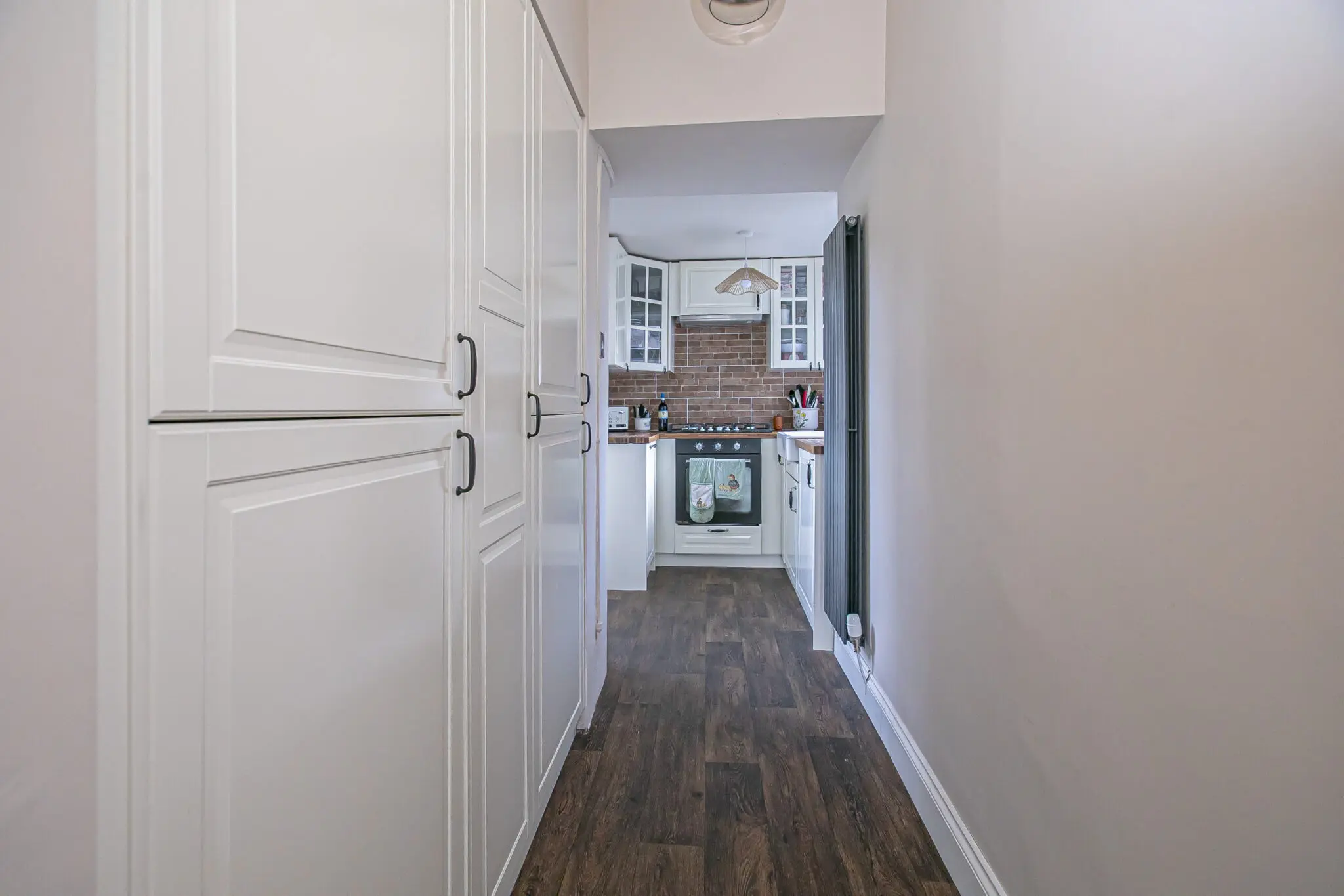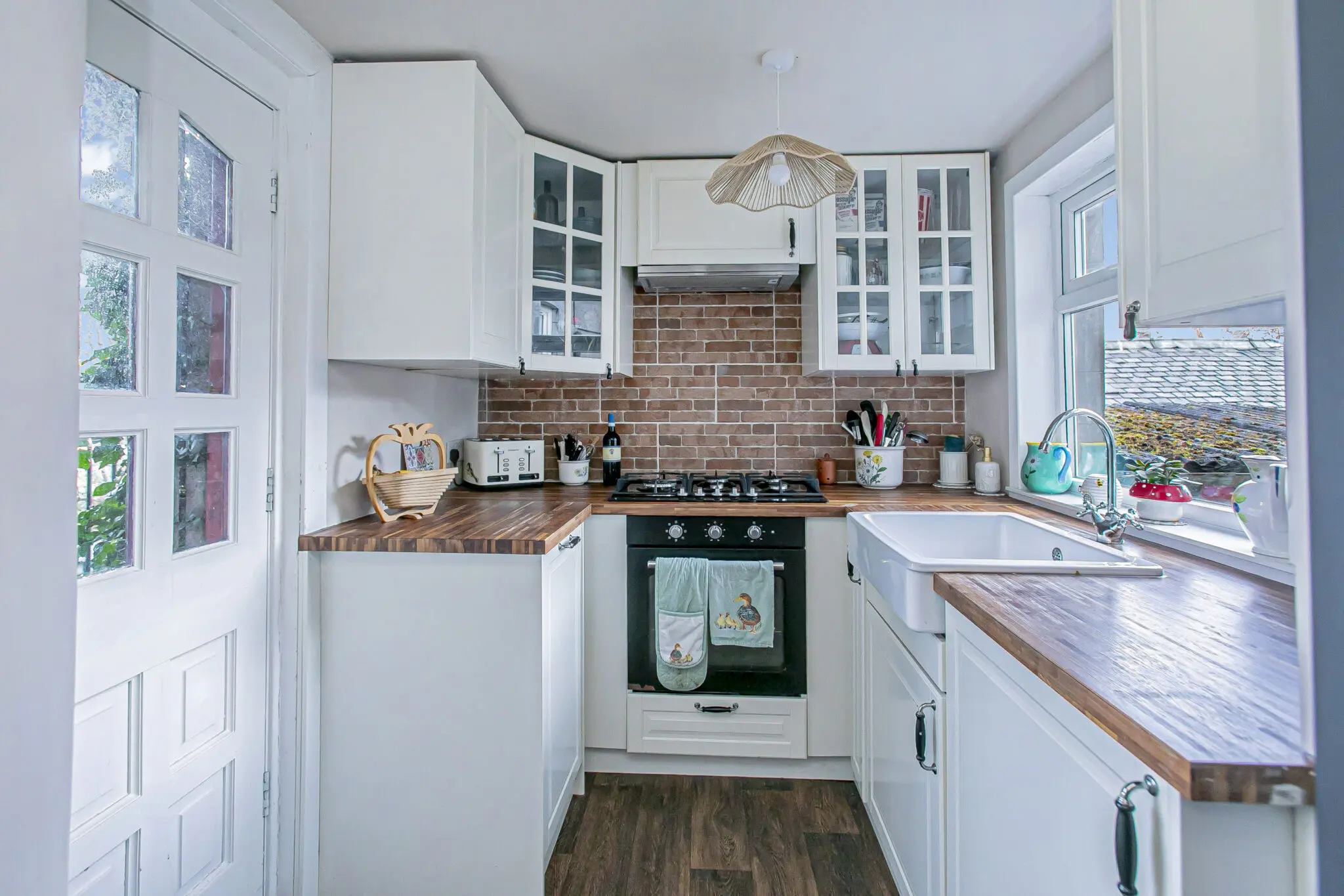 All floor coverings, blinds, bathroom and light fittings together with integrated appliances.