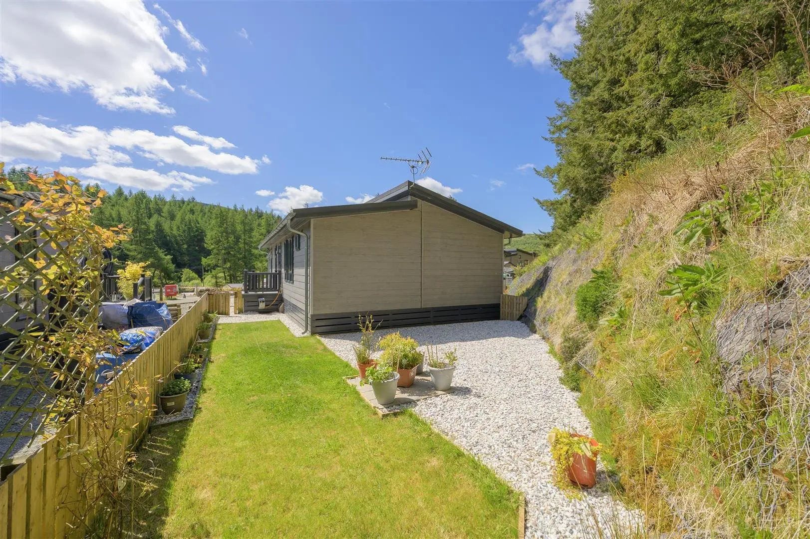 This stunning Prestige 'Casa Du Lusa' Lodge is situated within the residential enclave Rockcliffe, Glendevon country Park. The lodge enjoys an elevated position with views over Glen Sherup. As you enter the bright open plan living/dining/kitchen area which features a Howden Kitchen with integrated appliances - dishwasher, wine cooler, five ring dual fuel stove and American style fridge freezer. The living area benefits from light from cathedral style windows which lead on to a deck area for al-fresco dining with tremendous views across the countryside to the Glen Sherup area and the river Devon. The separate utility cupboard houses the washer dryer and has an abundance of storage space. There are 2 bedrooms with the master bedroom benefitting from an en-suite shower room with a rainwater can shower head and a walk-in wardrobe fitted with shelving and hanging rail providing ample room for storage. The main bathroom has a tiled feature wall behind the bath with an overhead can shower. Externally, the low maintenance garden is mainly laid to lawn with a gravel garden area and raised flower bed bordered by two car parking spaces. This property is not just a home; it is a lifestyle choice, offering the perfect blend of modern living and natural beauty. Whether you are looking for a permanent residence or a holiday retreat, this Lodge in Rockcliffe, Glendevon, is a rare find that promises to enchant and inspire. Don’t miss the chance to make this idyllic setting your own.