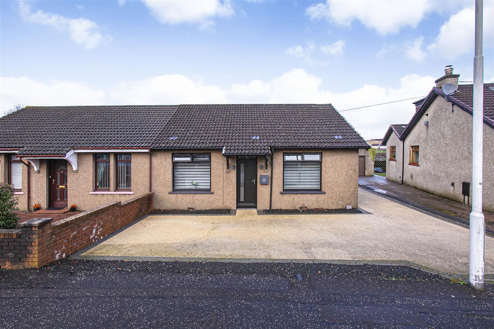 Occupying an enviable plot with generous gardens to rear is this three bed semi detached bungalow with parking for several vehicles and leading to detached single garage. The outdoor space is excellent and easy to maintain with seating and decking area providing a child and pet safe environment. The property is a credit to the present owner being offered in move in condition with modern fixtures and fittings throughout. The subjects briefly comprise entrance vestibule, reception hall, lounge with open plan aspect to fitted kitchen. The lounge has open views over the garden with patio doors. There are three bedrooms and shower room. Good storage and attic. The property is double glazed with gas central heating.